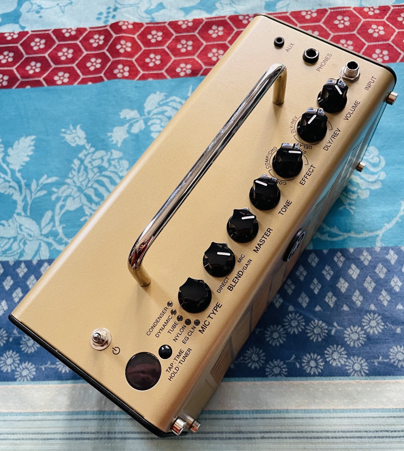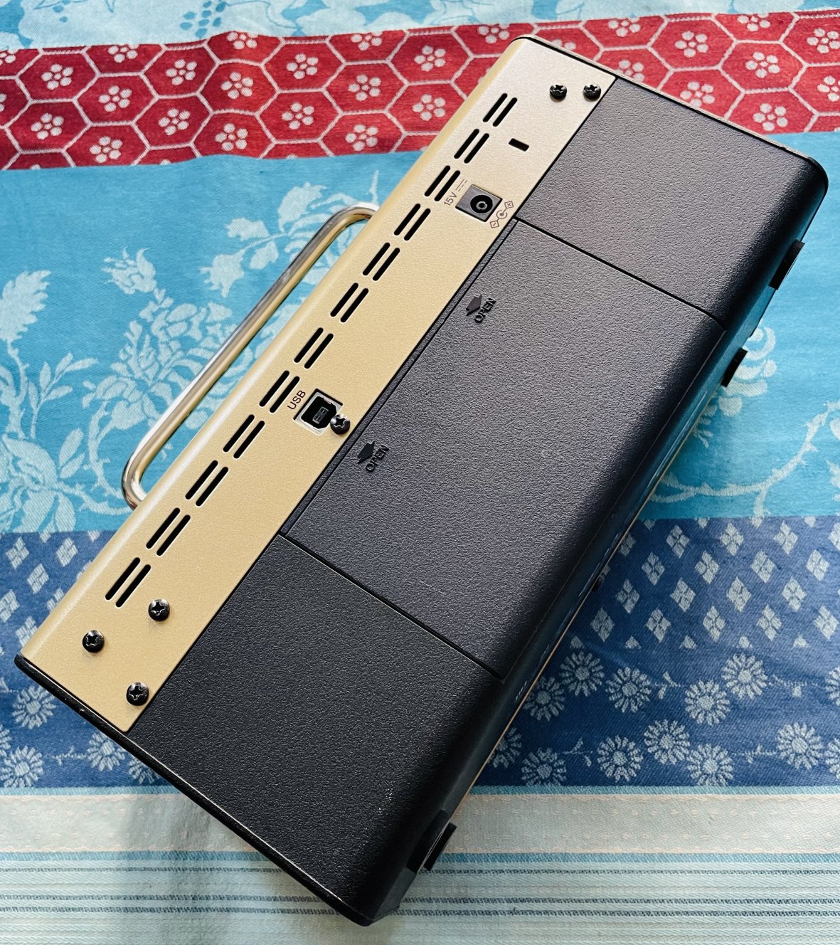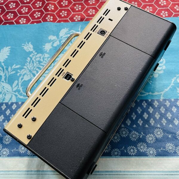 en très bon état, peu d’usure (très mineur), testé et fonctionnel. Puissance 10W (2 X 5W), 5 simulateurs d’amplis, des effets intégrés