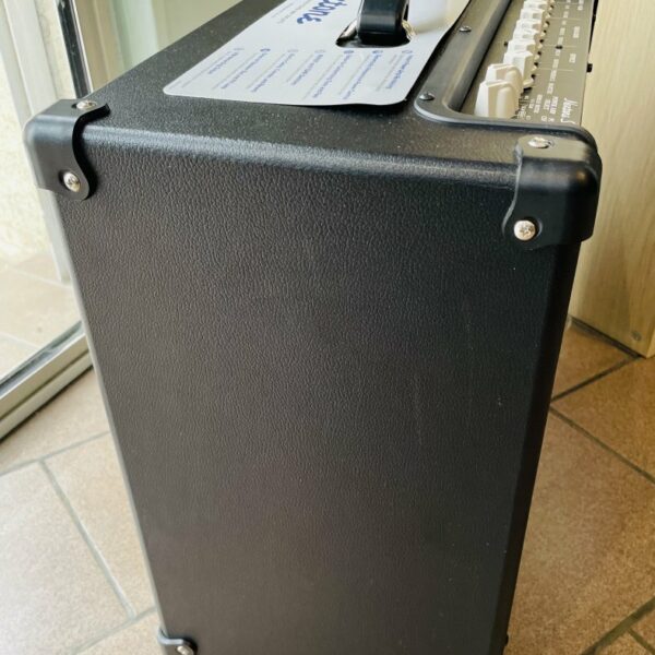 en parfait état, très peu utilisé, testé et fonctionnel. Puissance atténuable 0.5/20/40W, effects délay vibrato réverb, deux canaux clean drive avec boost + canal Custom, simulations de lampes 6L6 / 6V