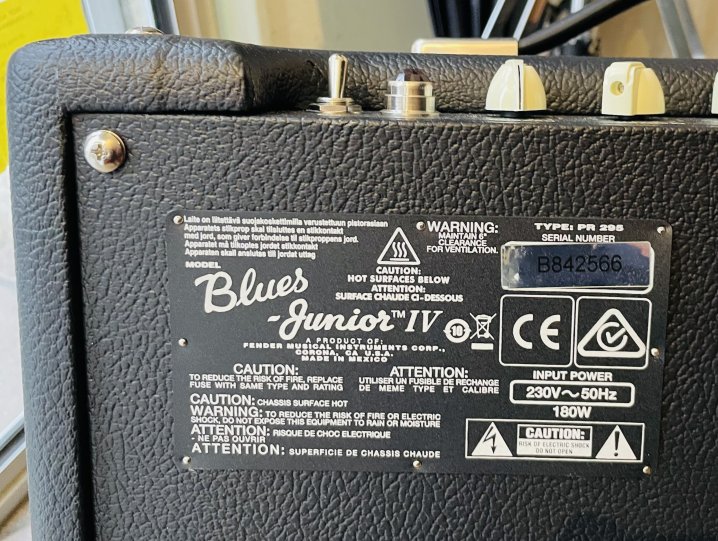Ampli guitare Fender Blues Junior IV n°B842566, footswitch, notice, carton d’origine