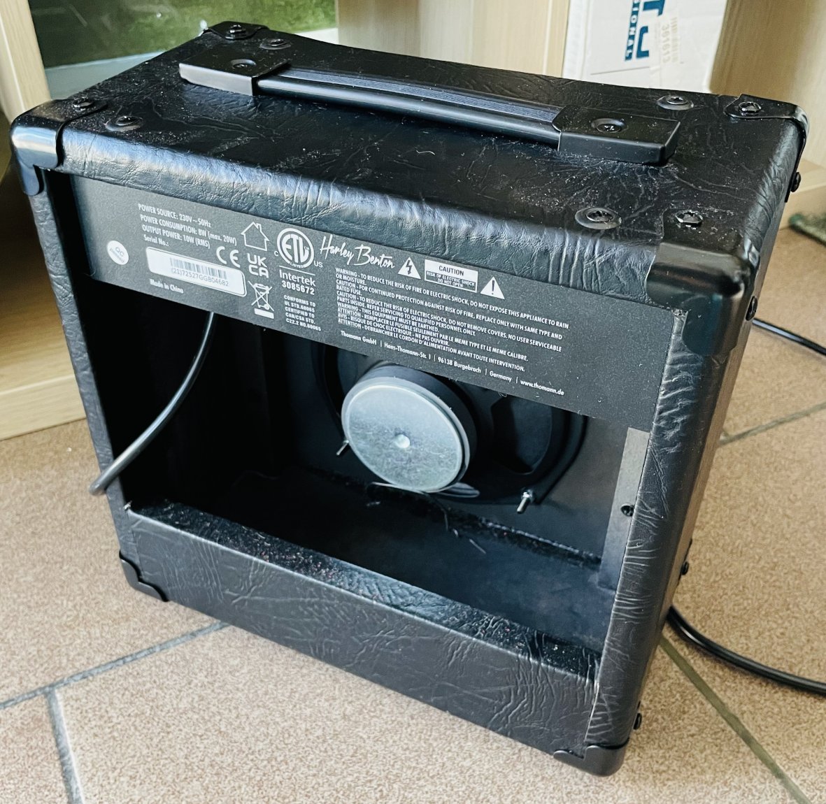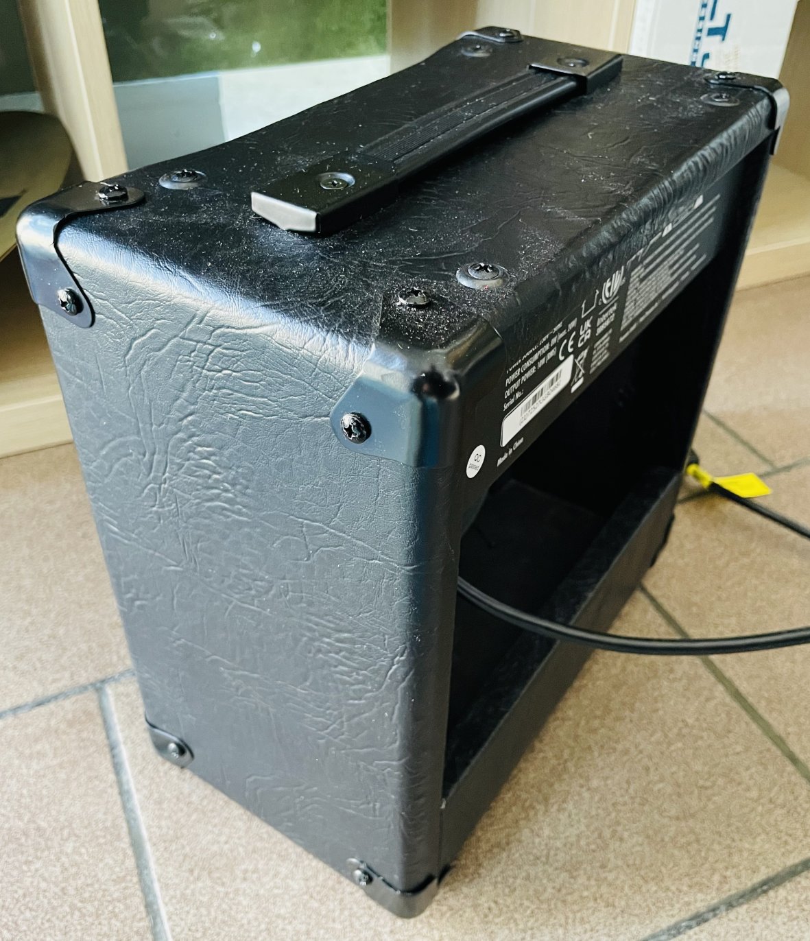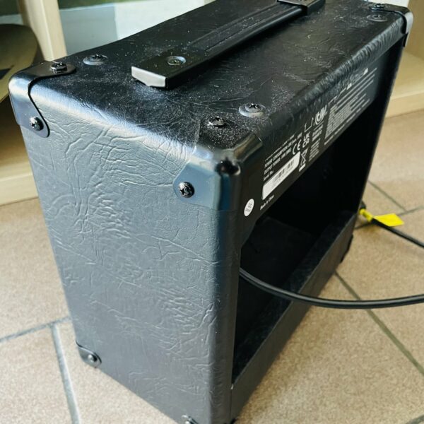 en très bon état et fonctionnel. Un petit ampli de toute petite taille pour des débutants et pas uniquement, le son clair est largement correct, le canal saturé est moins réussi et c’est normal au vu de la taille du haut-parleur.