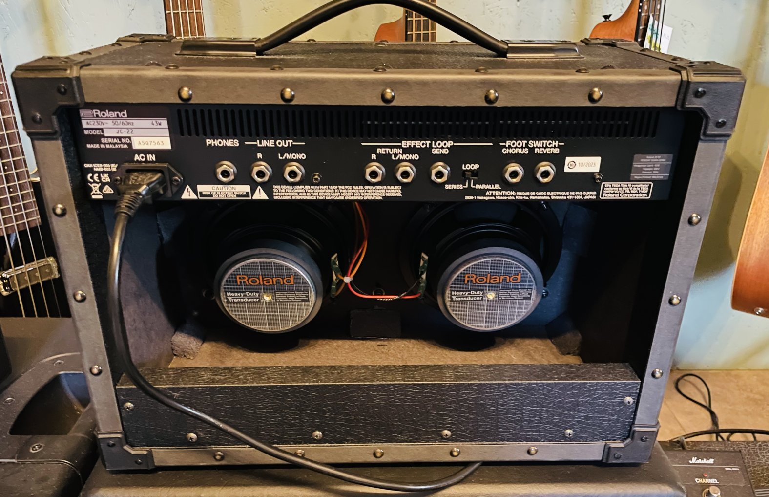 Ampli guitare Roland Jazz Chorus JC-22 n°ASQ7563, housse Roland ajoutée