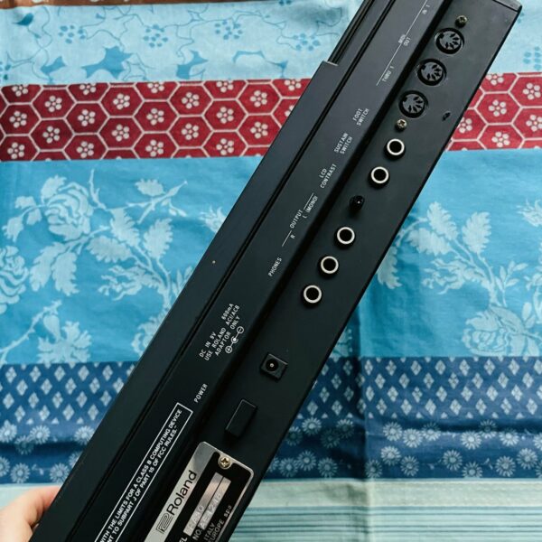 en bon état et fonctionnel, nous avons ajouté un bouton qui manquait, prévoir une alimentation 9V standard. Fabrication Italienne cette fois. C’est la même architecture sonore du synthé arrangeur E-70 et E-35 (Linear Architecture), la sérigraphie et la couleur sont les même d’ailleurs que le Roland D-50. Si vous voulez retrouver des sonorités des années 1990 vous pourriez être agréablement surpris, vous pourriez refaire même des démos de cold wave / new wave, il y en bien entendu un large panel de rythmes du rock à la bossa disco.