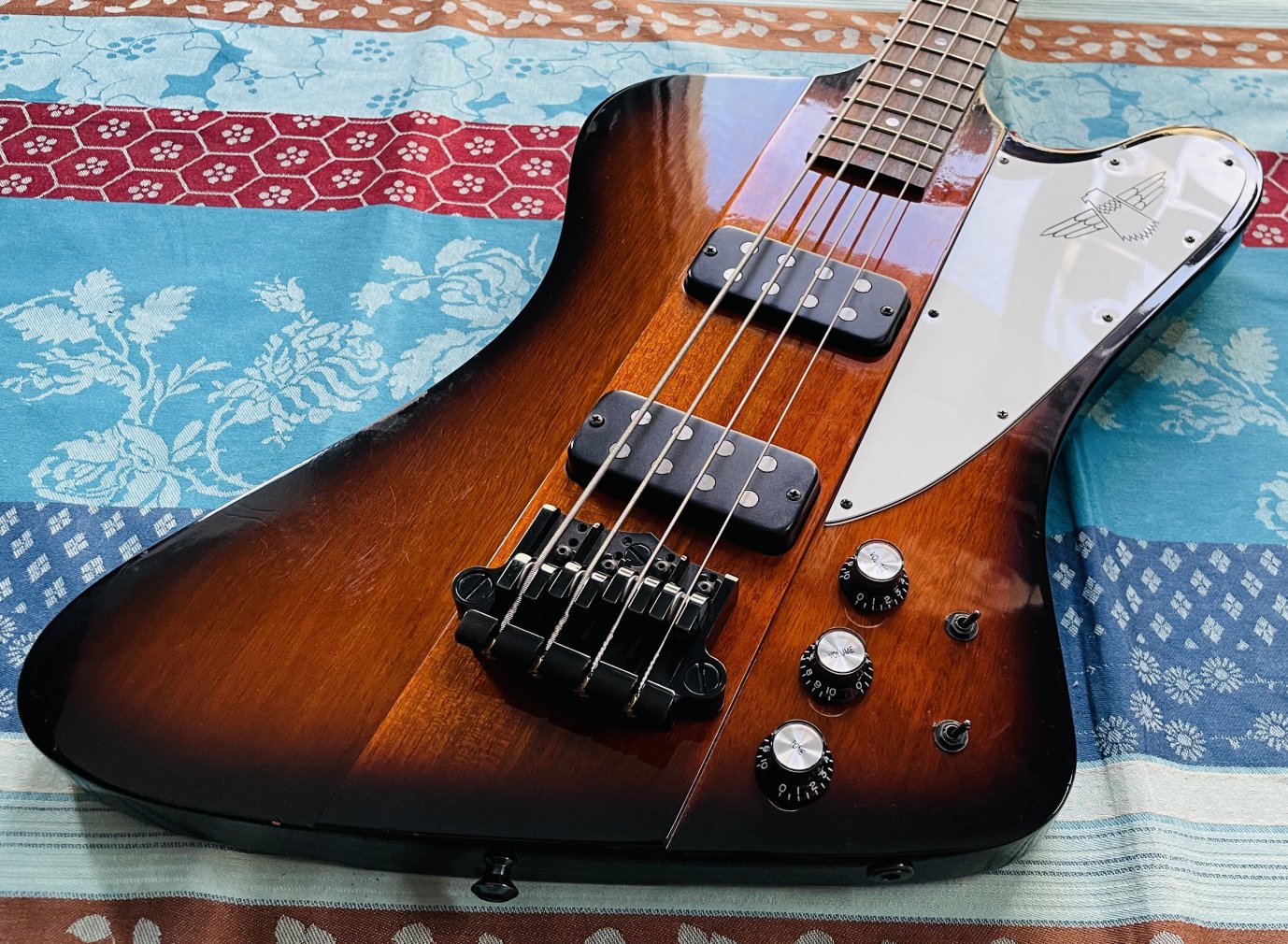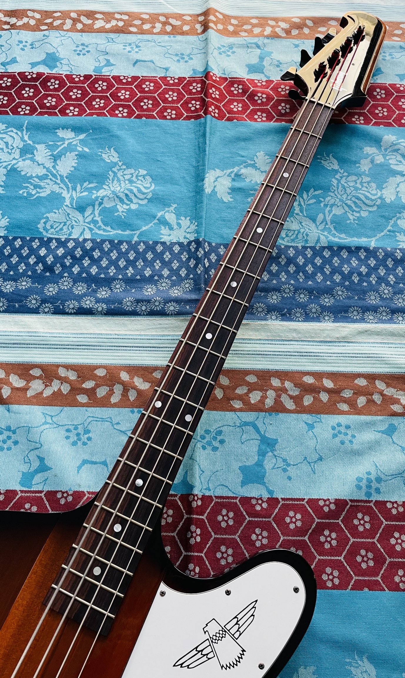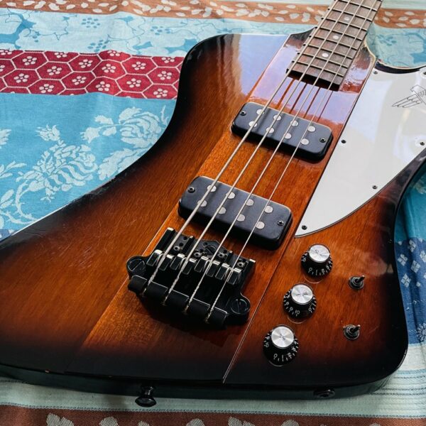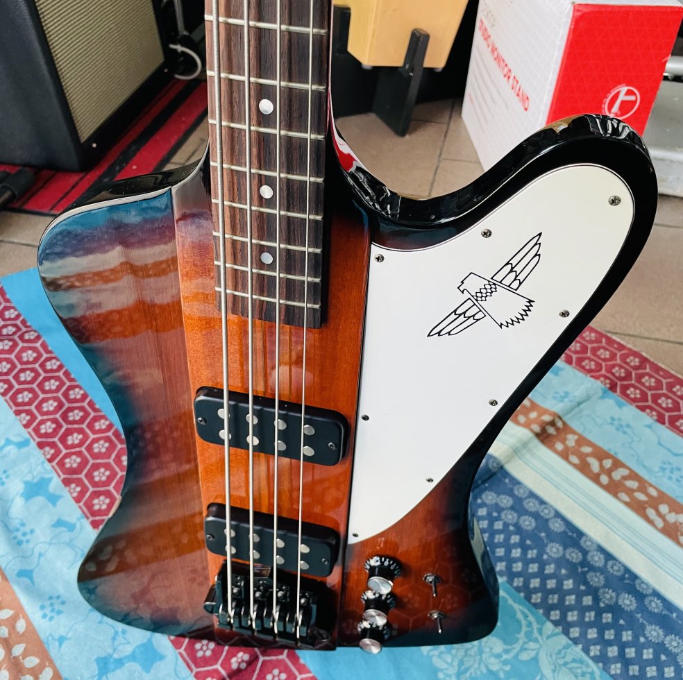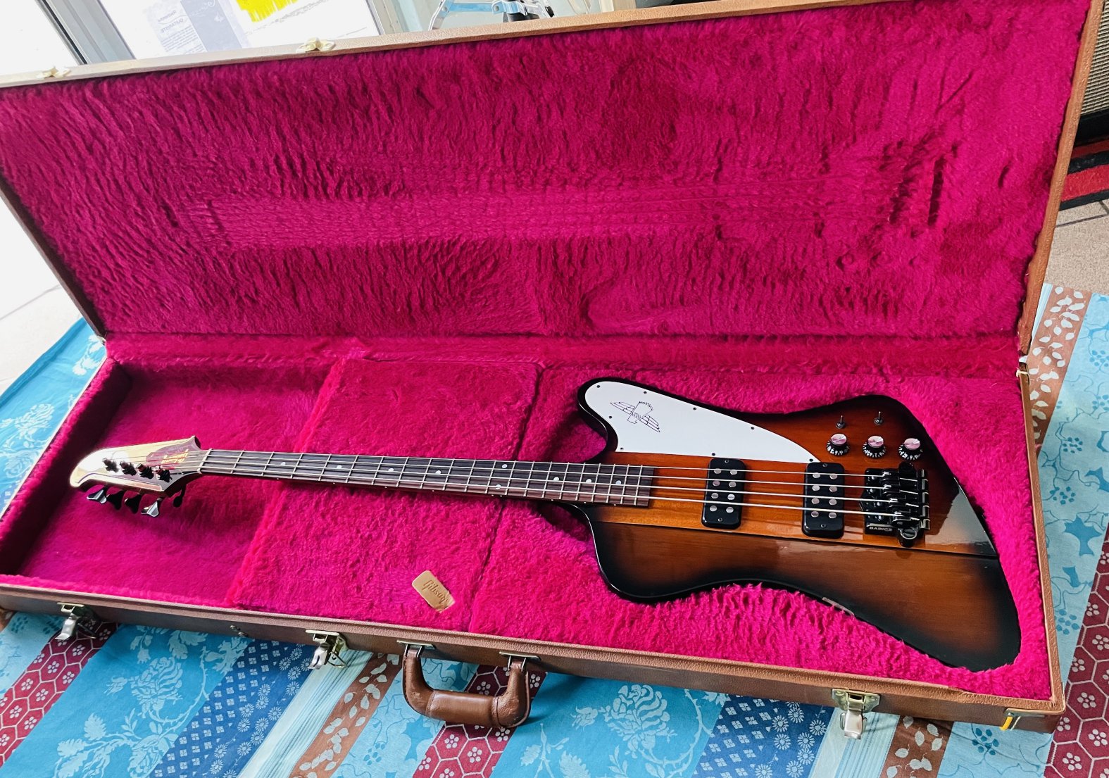 Basse électrique Gibson Thunderbird vintage sunburst n°150075245 (2015, USA), modèle BAT15VSBC1, étui Gibson, certificat, accessoires