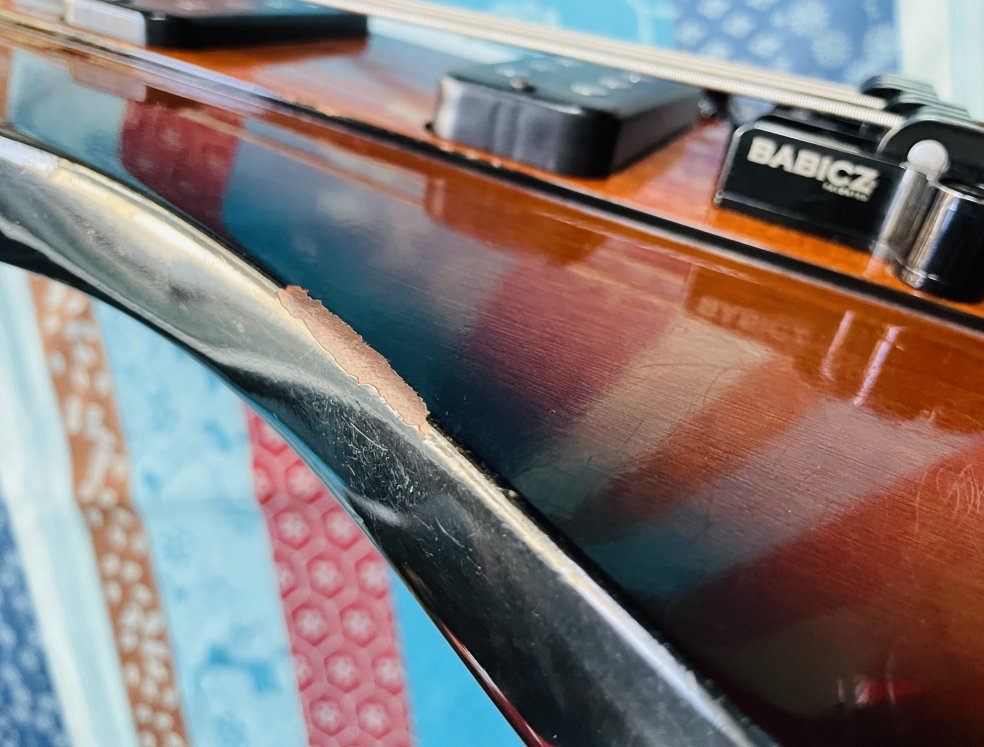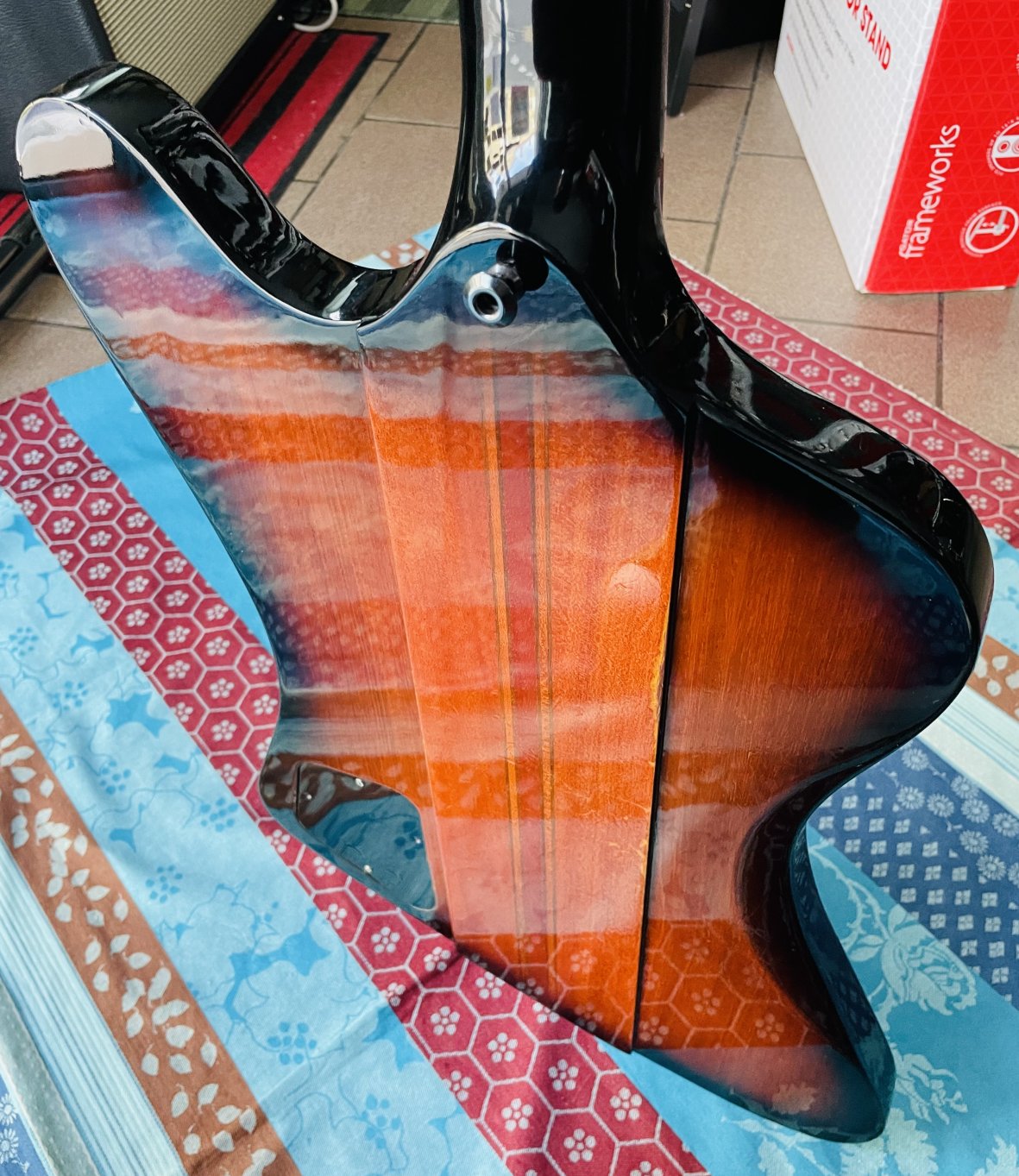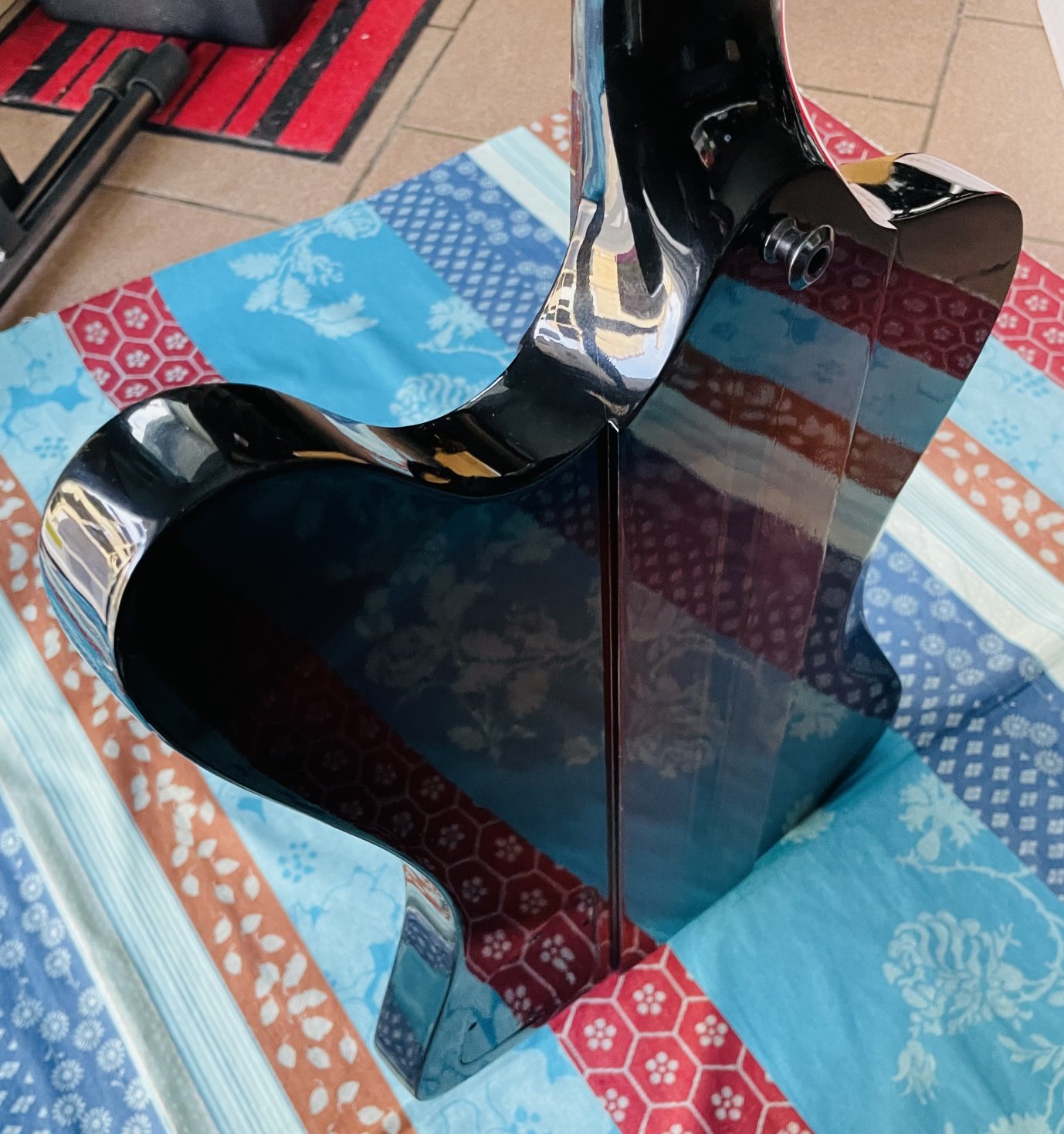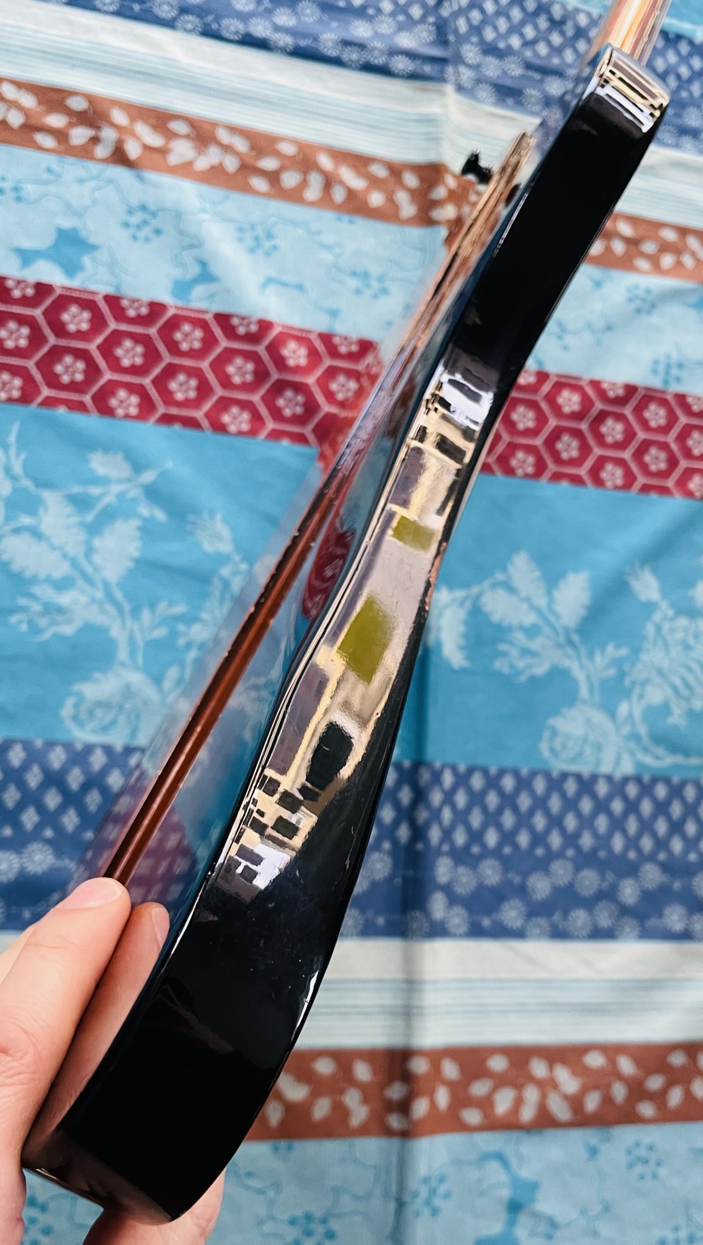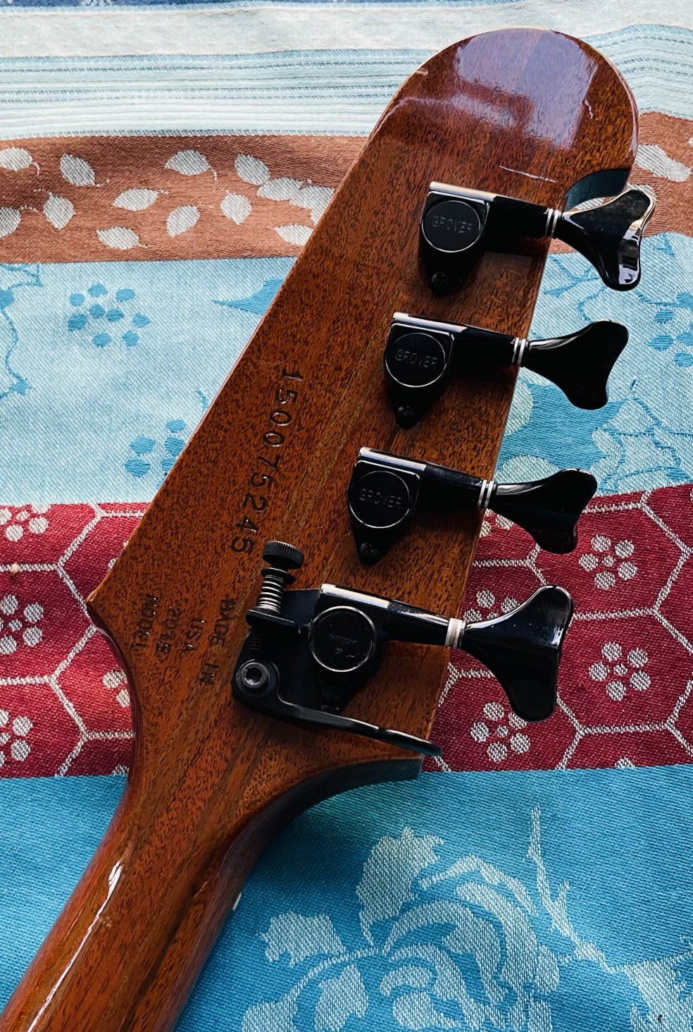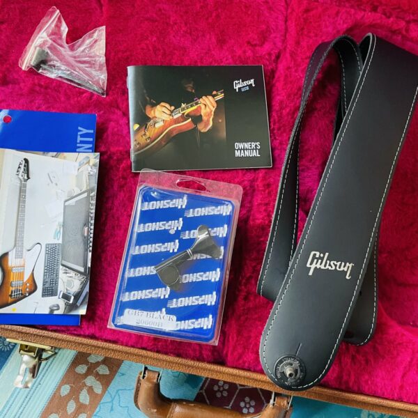 en bon état, quelques toutes petites traces sur le vernis et les boutons. La prise jack a été changée par une neuve chez l’atelier THEBE LUTHERIE (facture du 17.03.26 : remplacement jack tube), la prise jack est grise et a été changée après les photos où la prise jack de couleur noir avait un bon faux contact). Un Detuner Hipshop GB7 black est installé sur la tête.