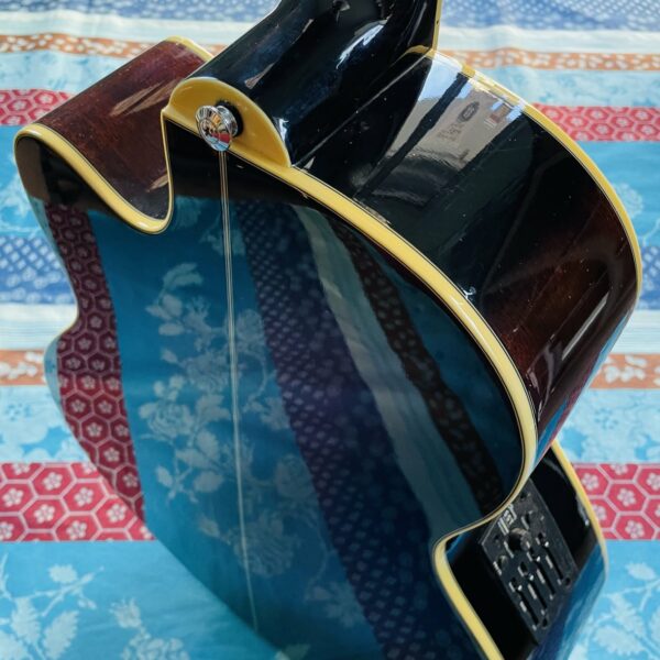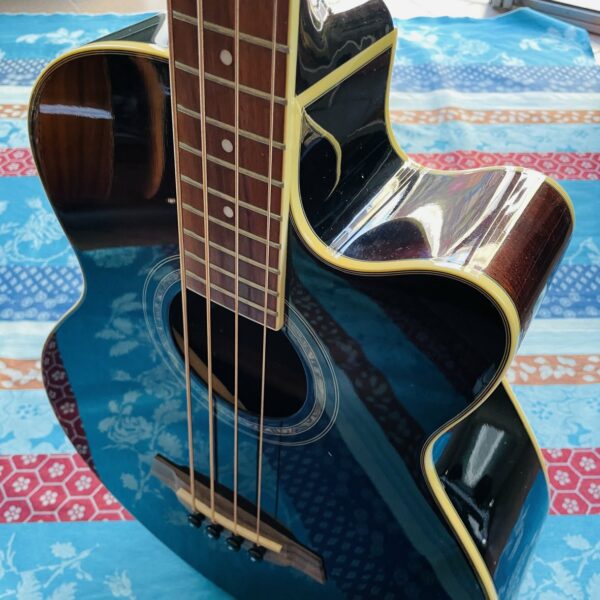 dans un état largement correct, le préampli montre des signes de fatigues (les cordes graves ne sortent pas assez fort par rapport aux deux aigus, le bouton tuner ne marche pas). Cette basse a quand même une bonne finition pour jouer en acoustique. La housse est comme neuve. Cette valait neuve 360 €.