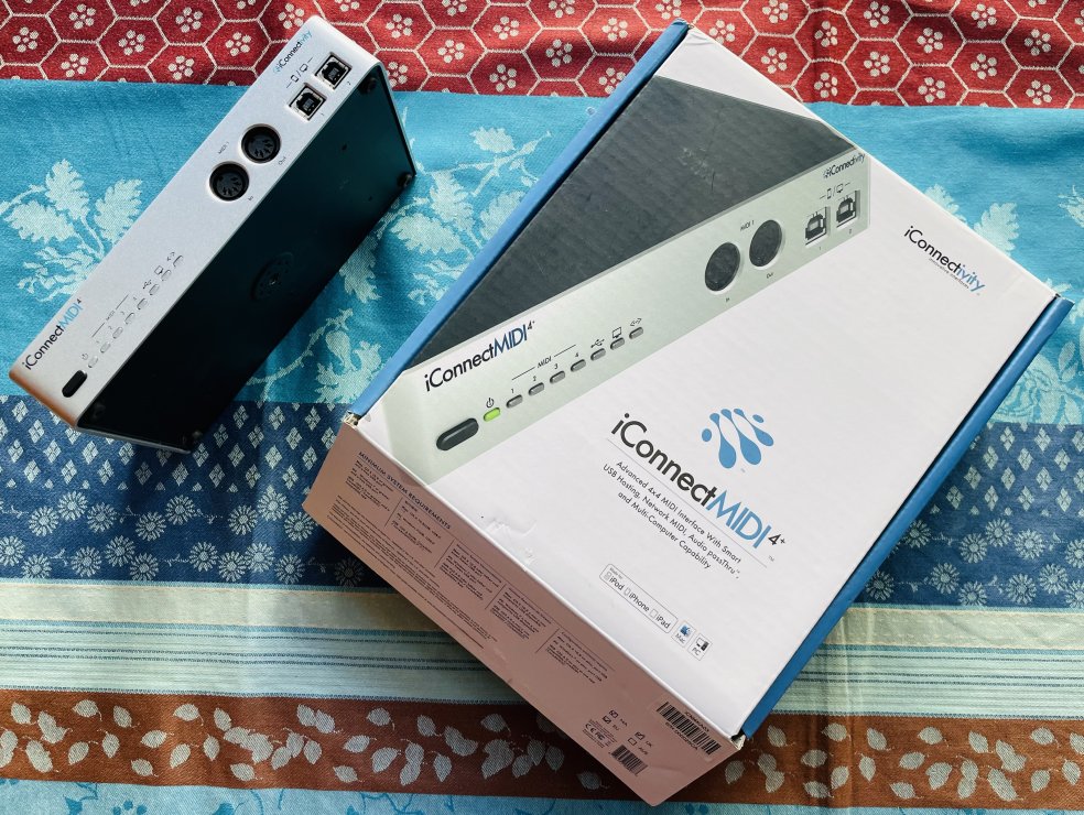 Boitier midi iConnectivity Midi4+, boite et alim d’origine