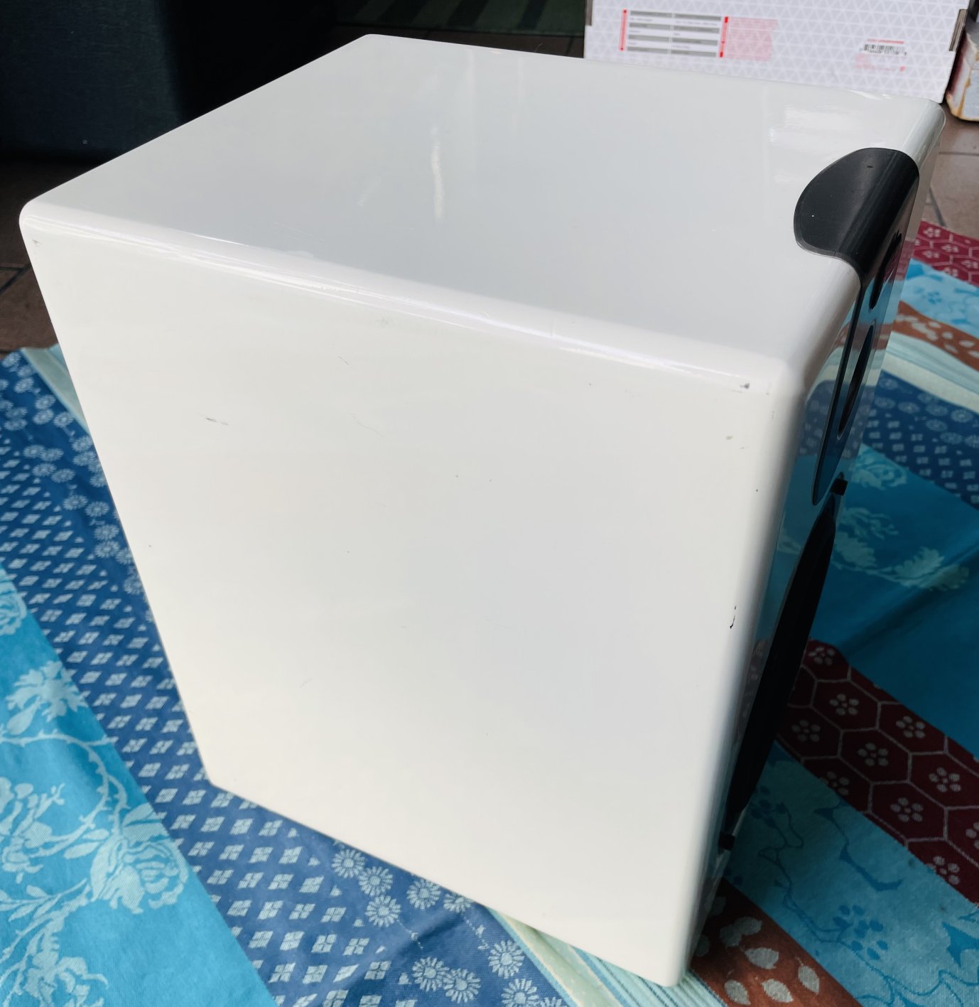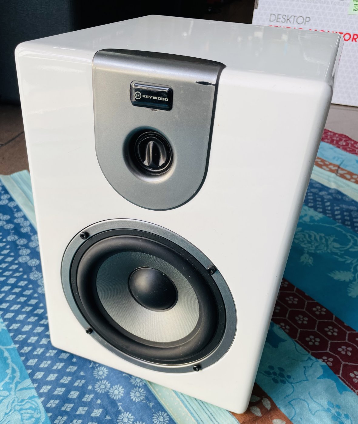 en bon état, testée et fonctionnelle. 3 entrées RCA / JACK / XLR, le petit tweeter du haut est écrasé mais tout est bien fonctionnel, le son de cette enceinte est largement bon, Keywood était une marque de Cultura, ils ont créé des pianos numériques Keywoord mais cette marque ne semble pas avoir duré longtemps.