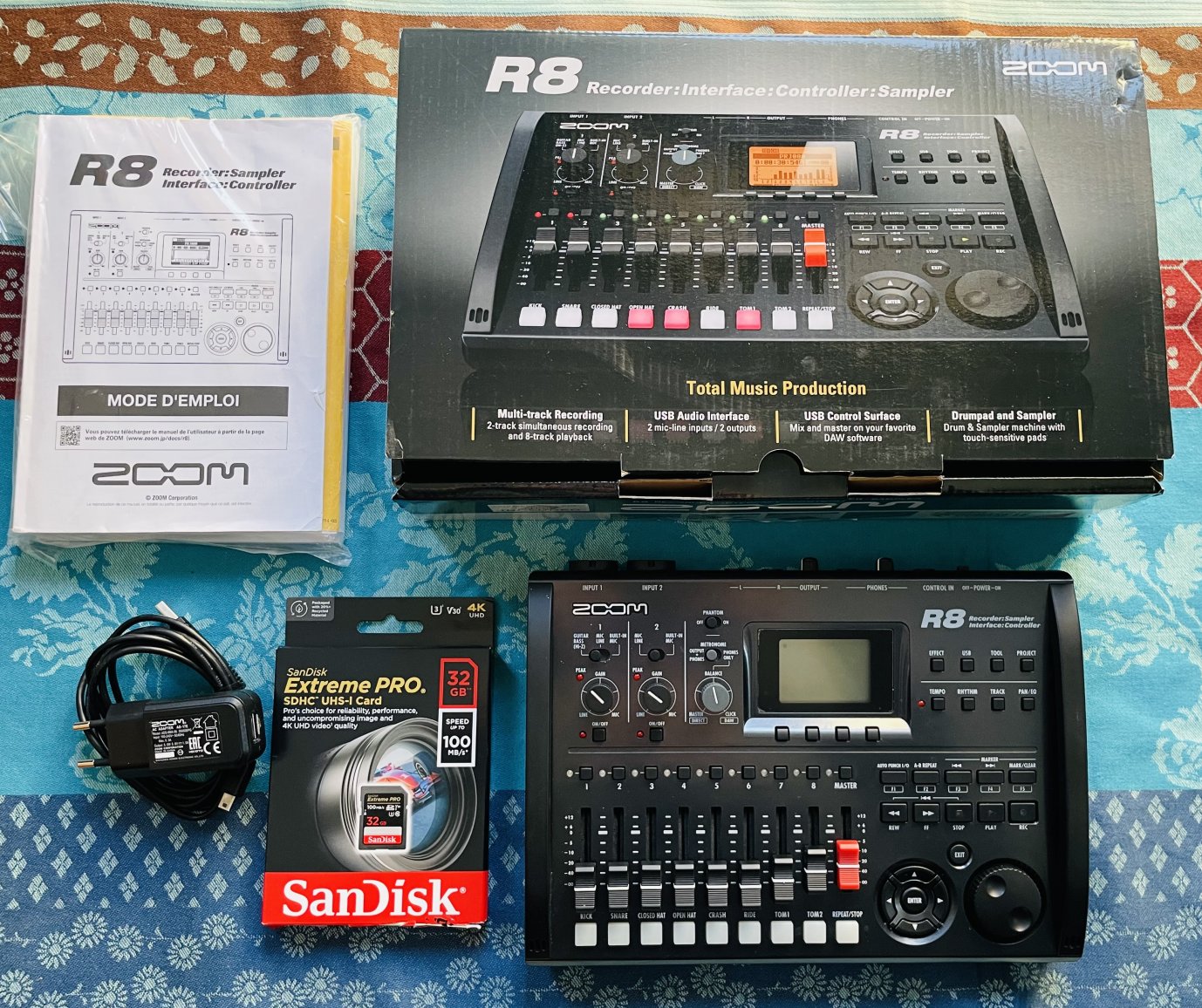 Enregistreur Zoom R8 n°087602, boite d’origine, carte SD 32 GB ajoutée, notice