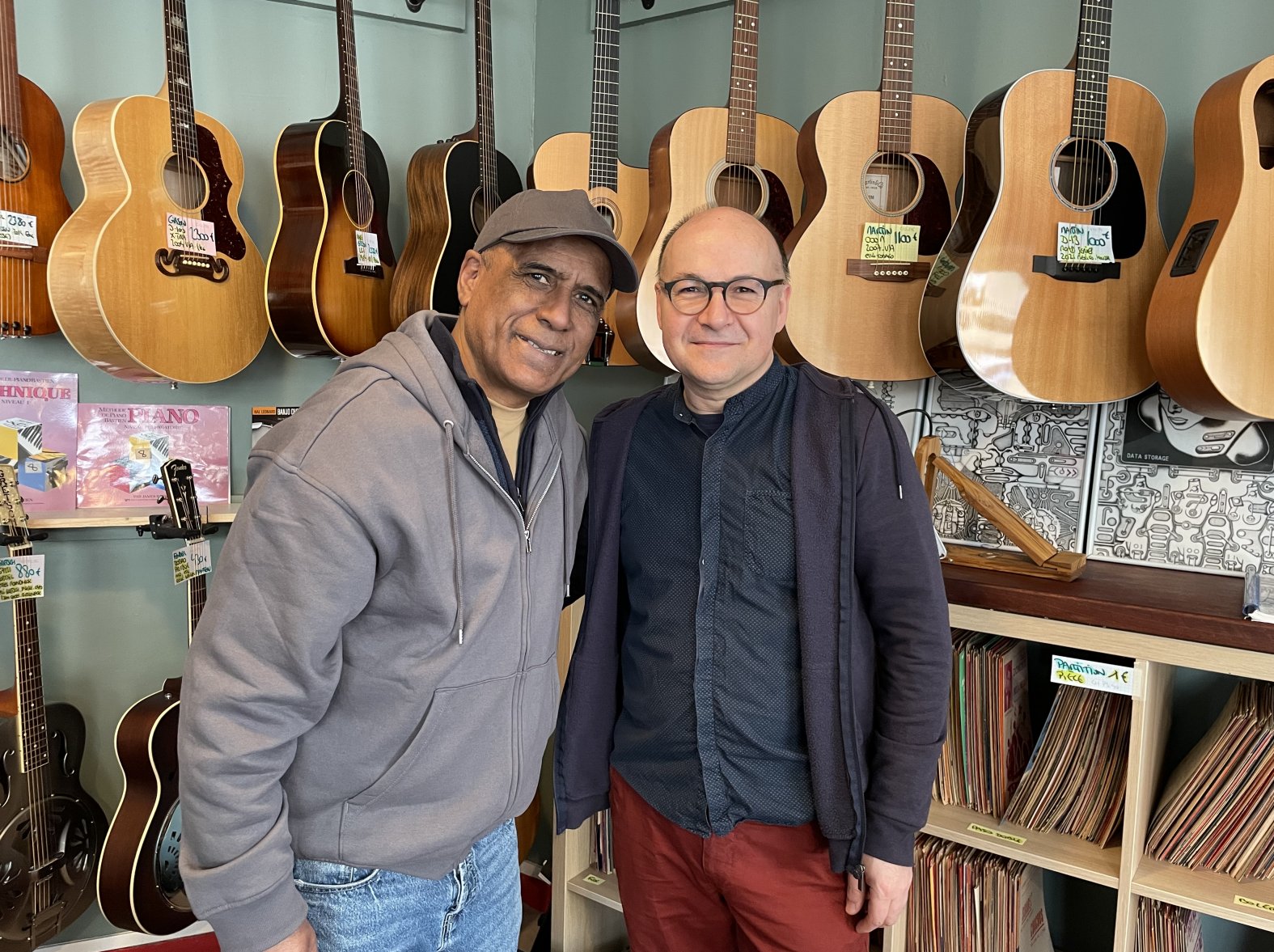 Ce matin 12 mars 2026 avec l’artiste auteur guitariste chanteur Erick Manana, toujours fidèle au magasin depuis plus de 10 ans quand il est de court passage à Bordeaux (il réside à Berlin). Grand représentant de la musique Malgache ba gasy, toujours d’une très grande gentillesse à mon égard, un artiste de renommée internationale très humble et accessible. Je le remercie à nouveau bien chaleureusement et amicalement pour toujours passer me voir quand il est à Bordeaux. J’ai découvert avec Erick la profonde musique malgache et suis très heureux que notre petit magasin ai accueilli des guitares qui ont été jouées par cet artiste authentique et touchant pour tous les Malgaches. J’ai pu voir son concert avec la violoniste chanteuse Allemande Jenny Fuhr au Rocher Palmer pour fêter en juin 2022 ses 45 ans de scène, un magnifique concert avec pleins d’invités. Voici ci-dessus un concert et interviews intéressants en Français Malgache.