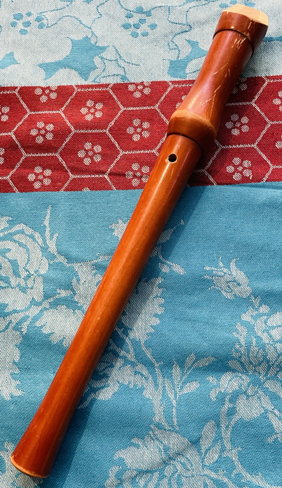 dans un état correct, des traces et rayures sur le vernis de la flûte en poirier, belle sonorité malgré tout