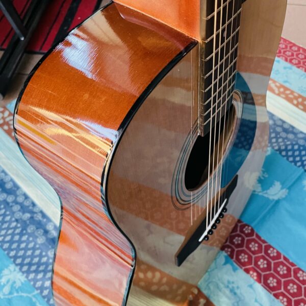 en très bon état, une guitare très peu jouée, il y a encore le film plastique neuf sur le pickguard, l’instrument a été réglée parfaitement avec des cordes neuves Martin par le luthier Manteau, autant préciser qu’elle est en bien meilleur état de réglage que vendue neuve! (facture 25.02.26 : réglage complet de l’instrument, ajustement de la hauteur des cordes, changement de cordes et nettoyage complet). Prix du neuf 159 €