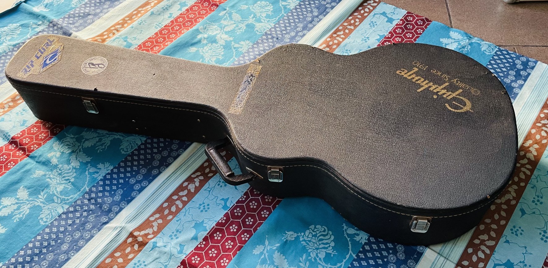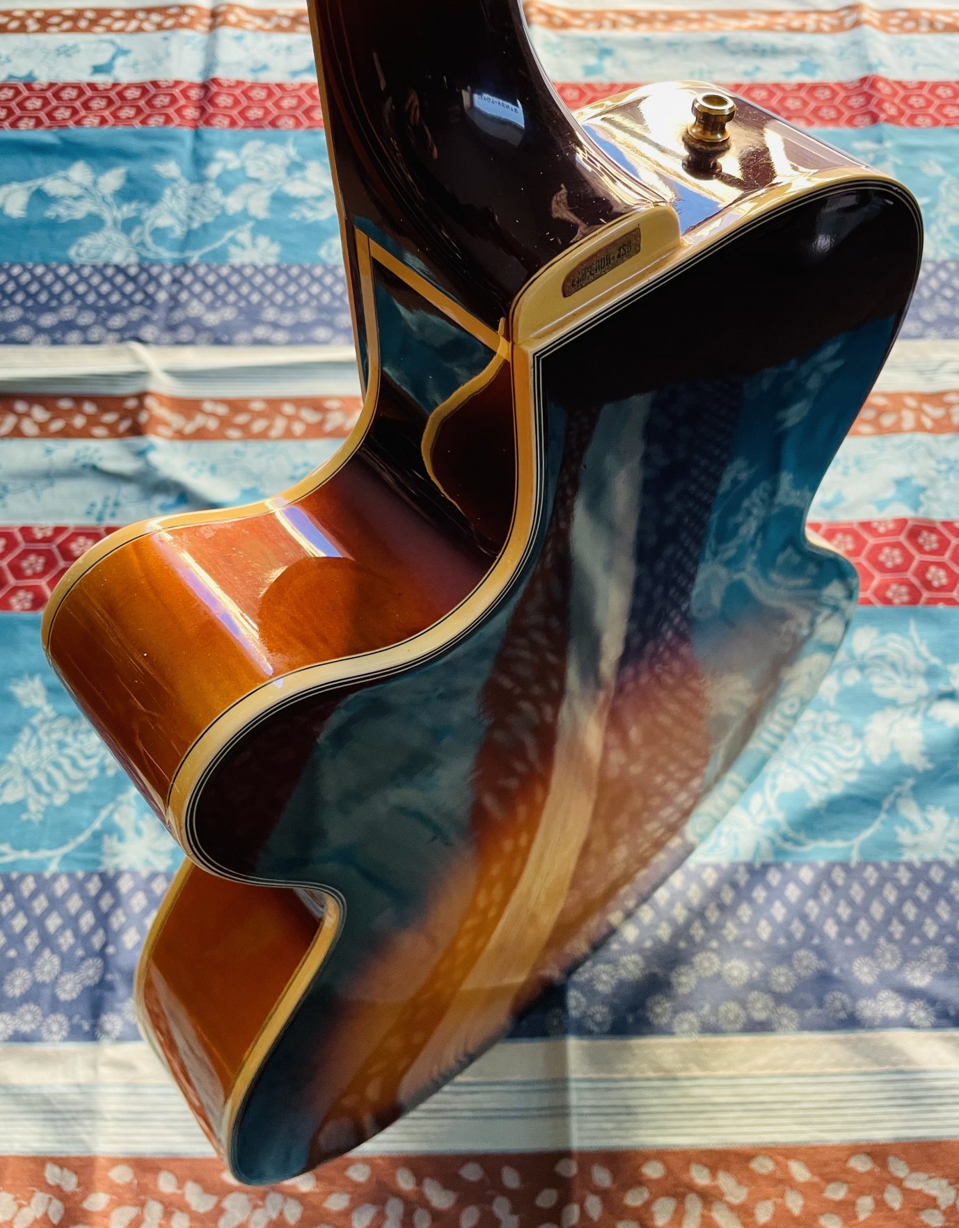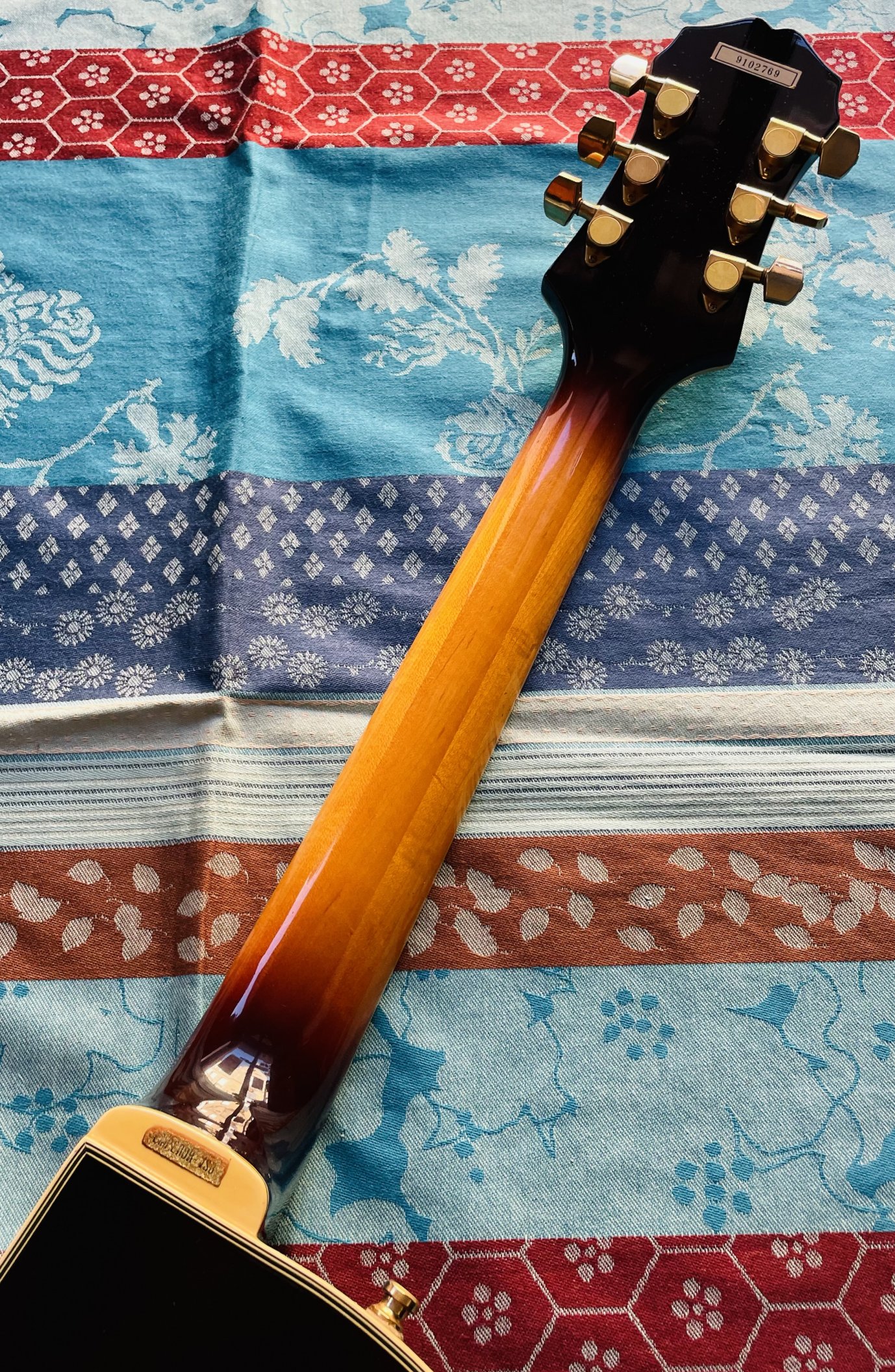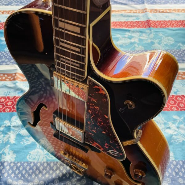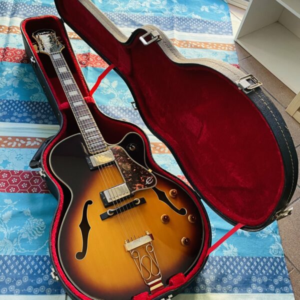 Guitare électrique Epiphone Emperor J sunburst n°9102769 (1991, Korea), étui Epiphone, révision luthier Caro