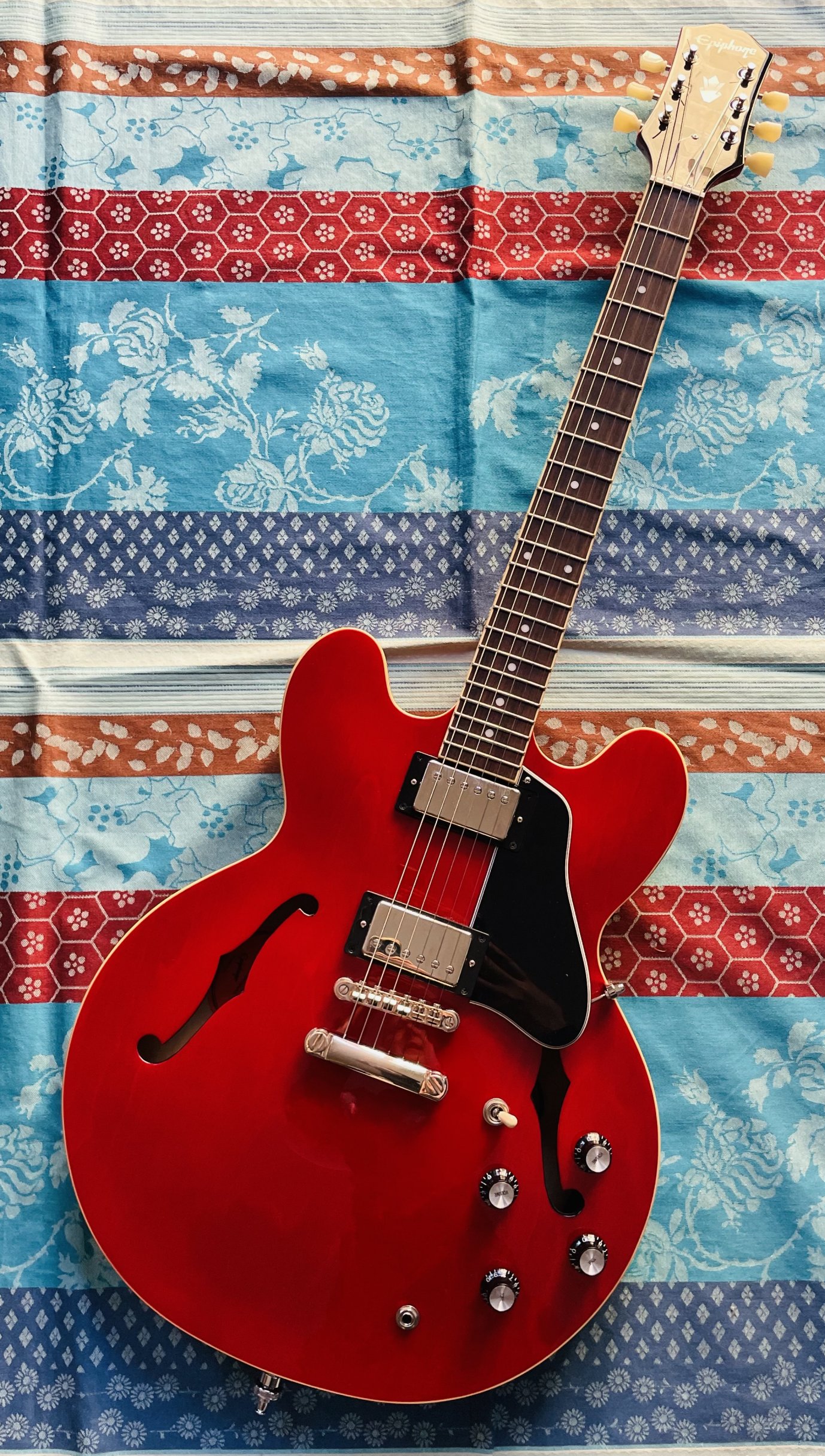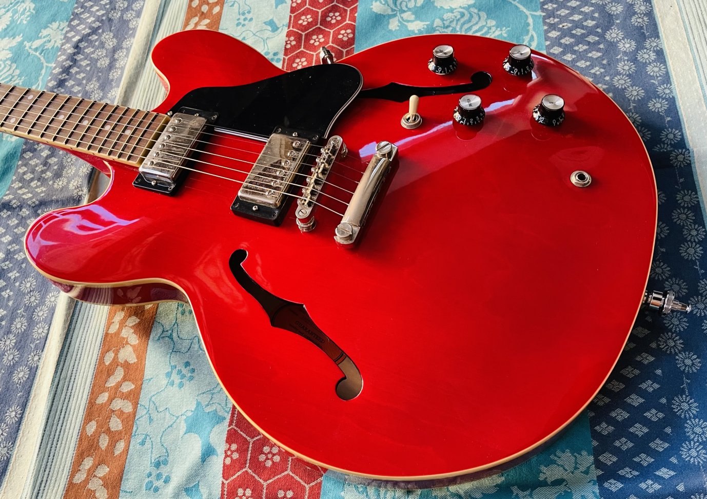 Guitare électrique Epiphone ES-335 IG Cherry n°23051511048, housse Tobago, réglée luthier Thomas