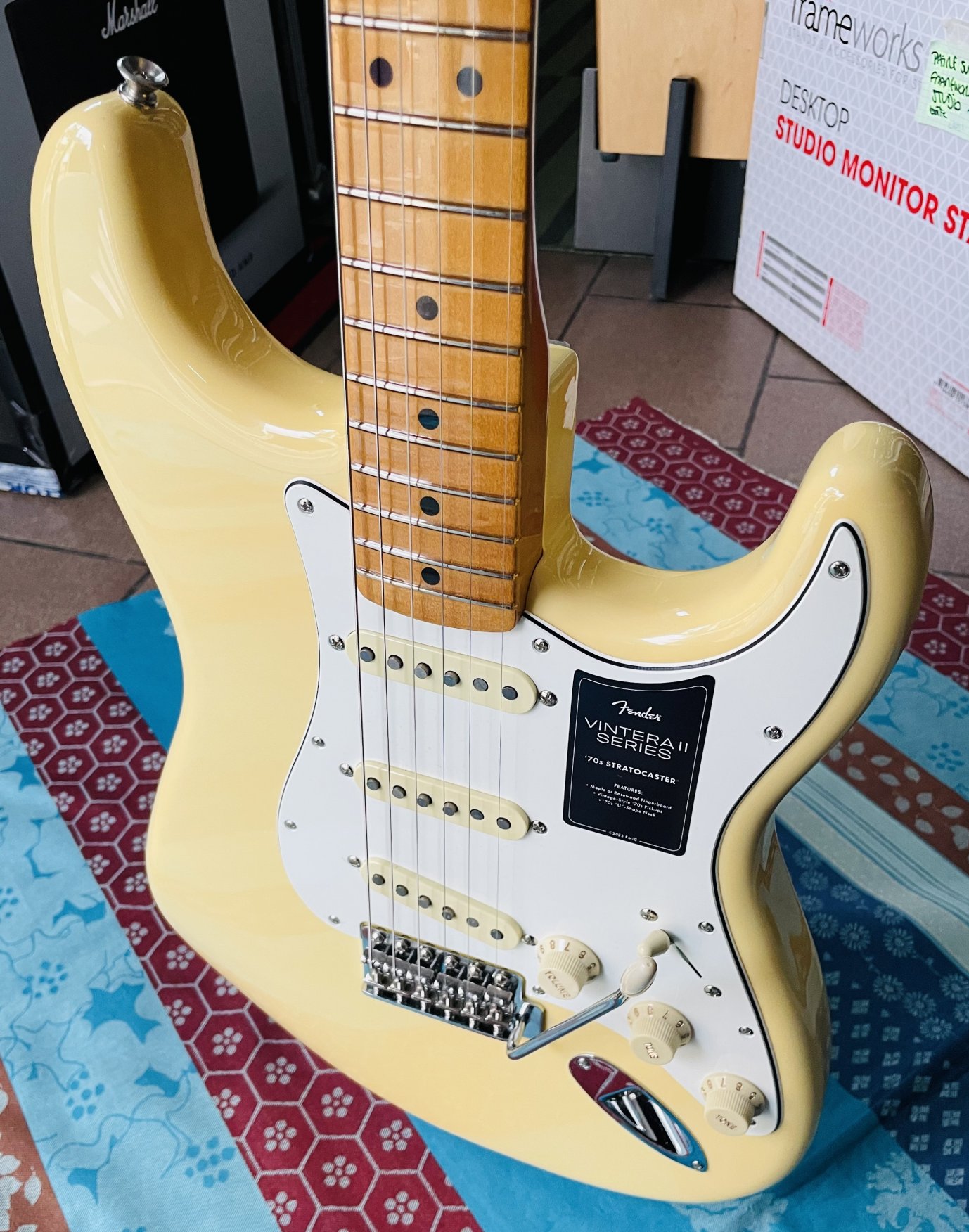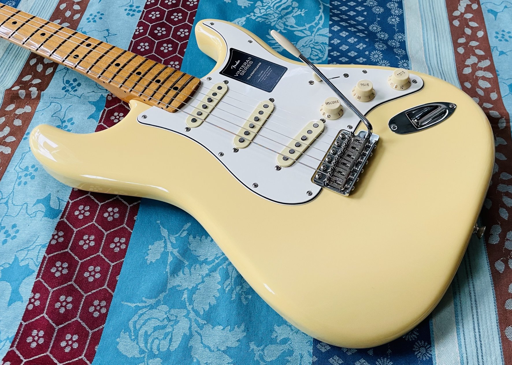 Guitare électrique Fender Vintera II 70’s Stratocaster vintage white n°MX23155882 (2023, Mexico), modèle 0149032341, belle housse Fender tweed
