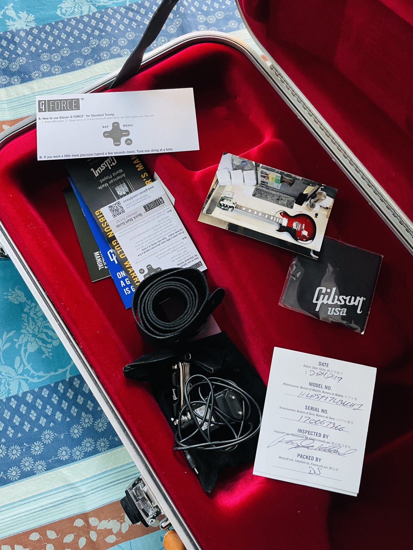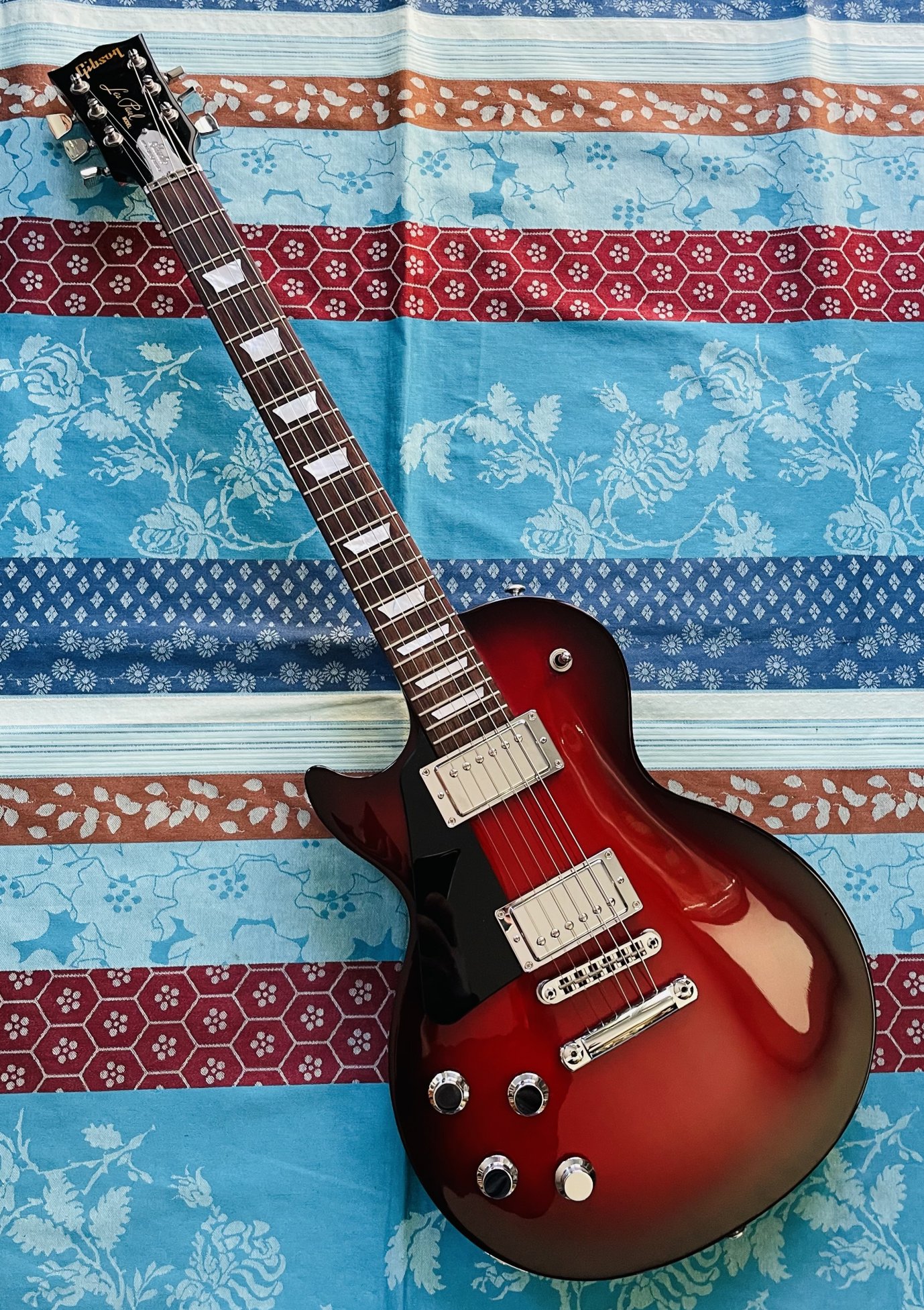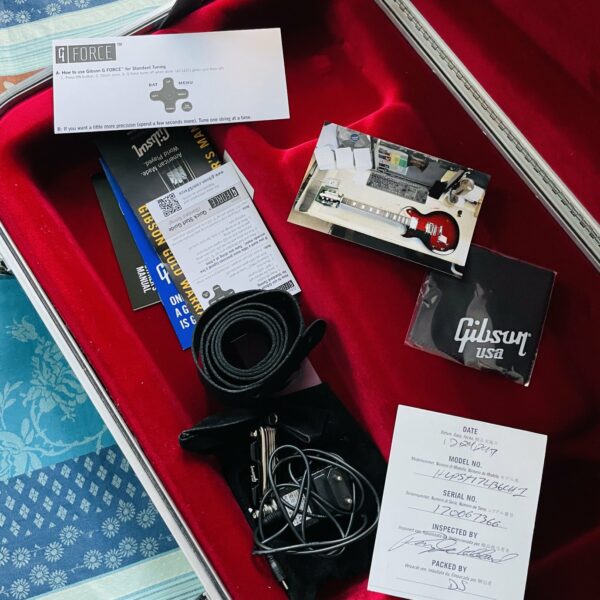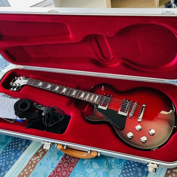Guitare électrique gaucher Gibson Les Paul HP black cherry Burst n°170067366 (2016, USA), série High Performance, G-Force, bel étui Gibson, certificats et accessoires Gibson.