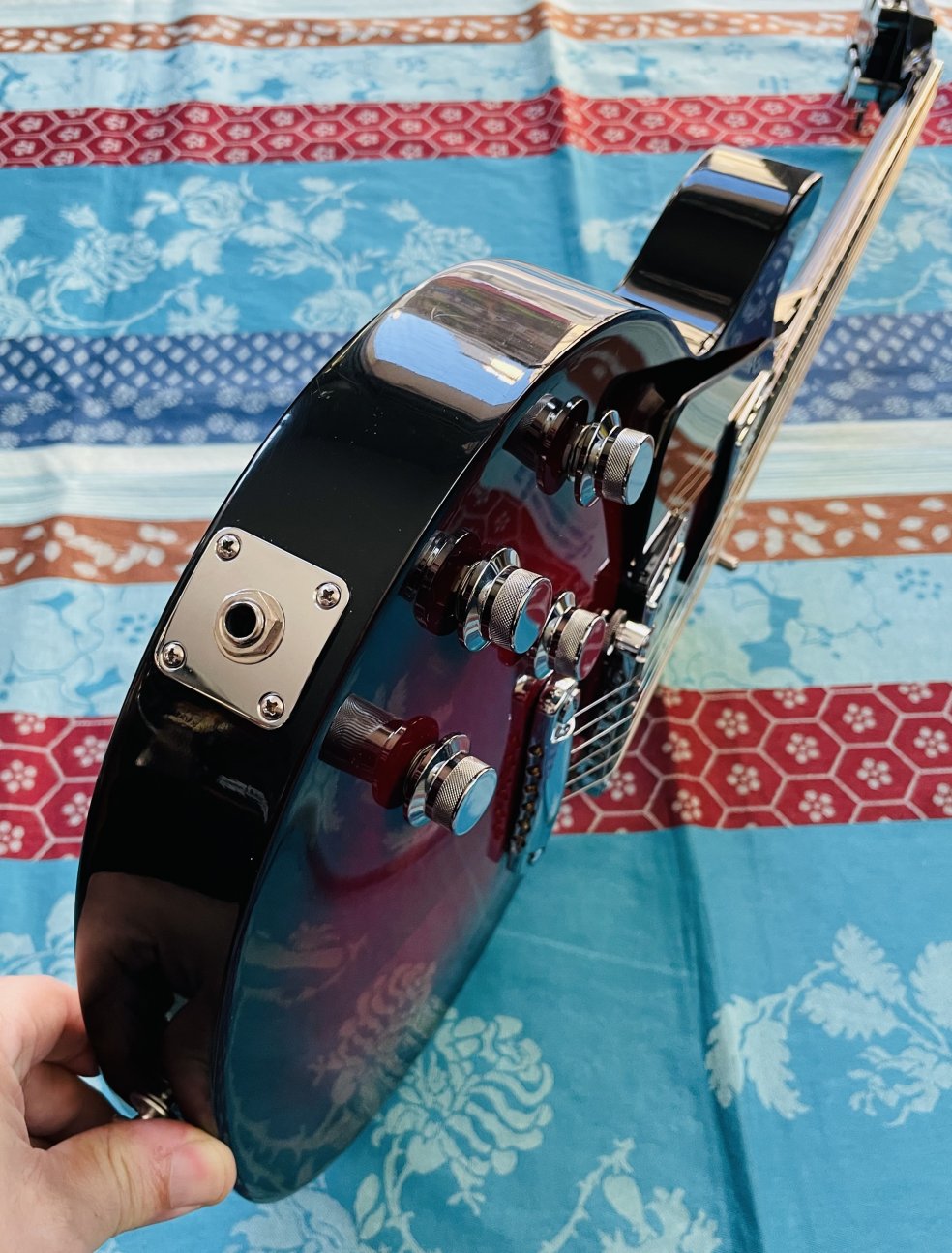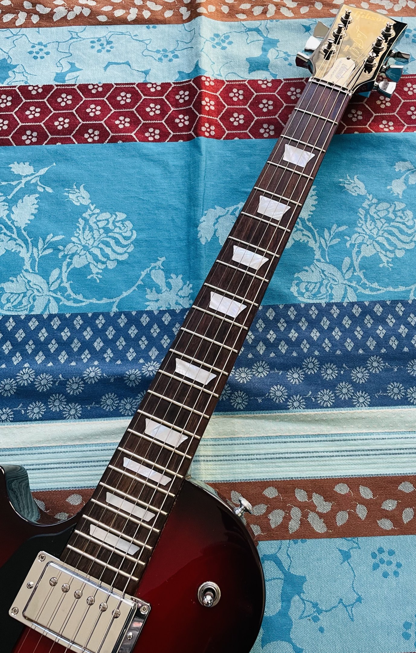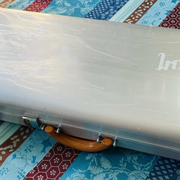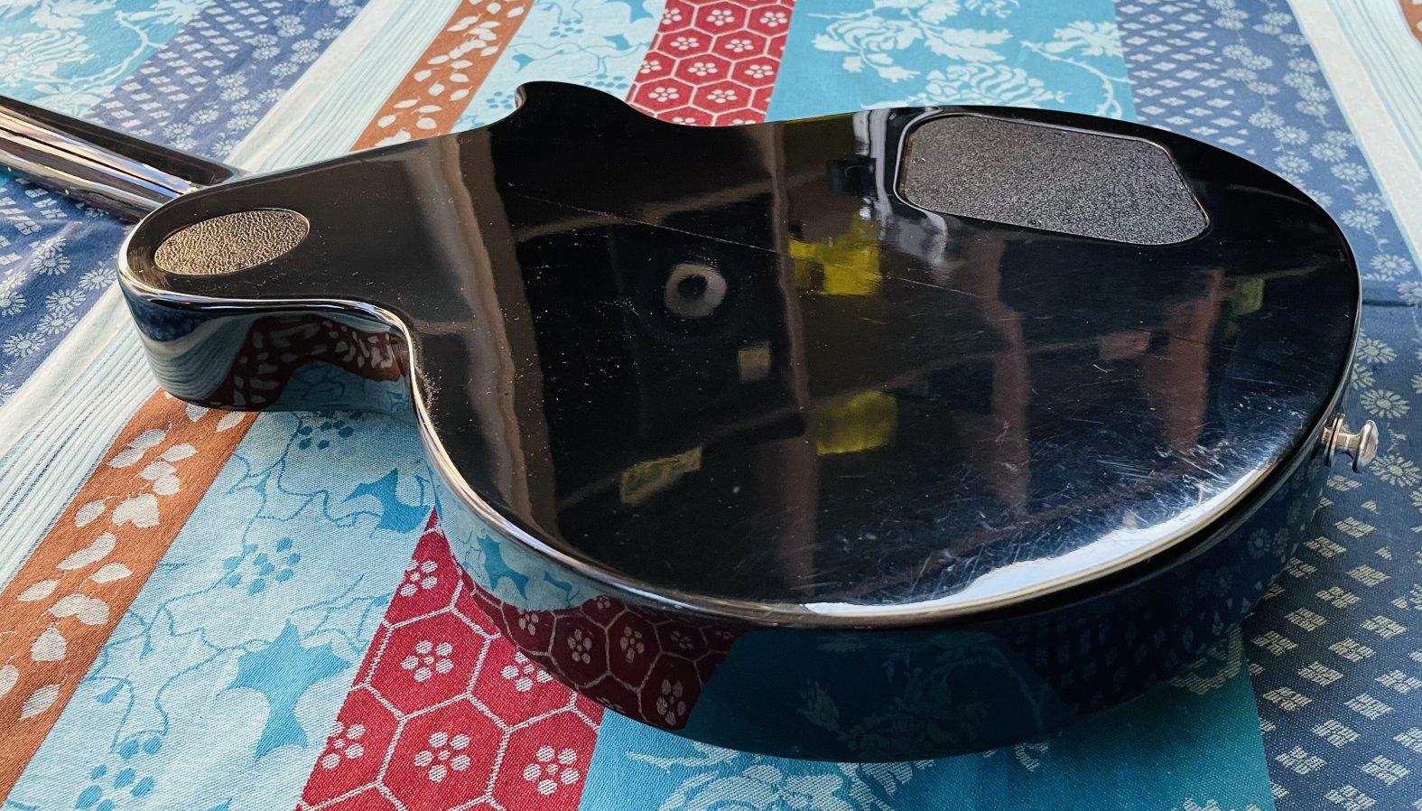 en bon état général, juste quelques petites traces bien mineures, les frettes sont en très bons état, ce n’est pas une guitare beaucoup jouée. Testée et fonctionnelle, l’accordeur intégré G-Force est fonctionnel. L’étui est superbe (il y a encore le film plastique dessus)