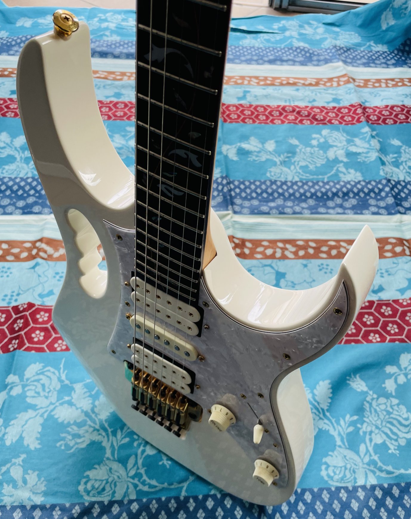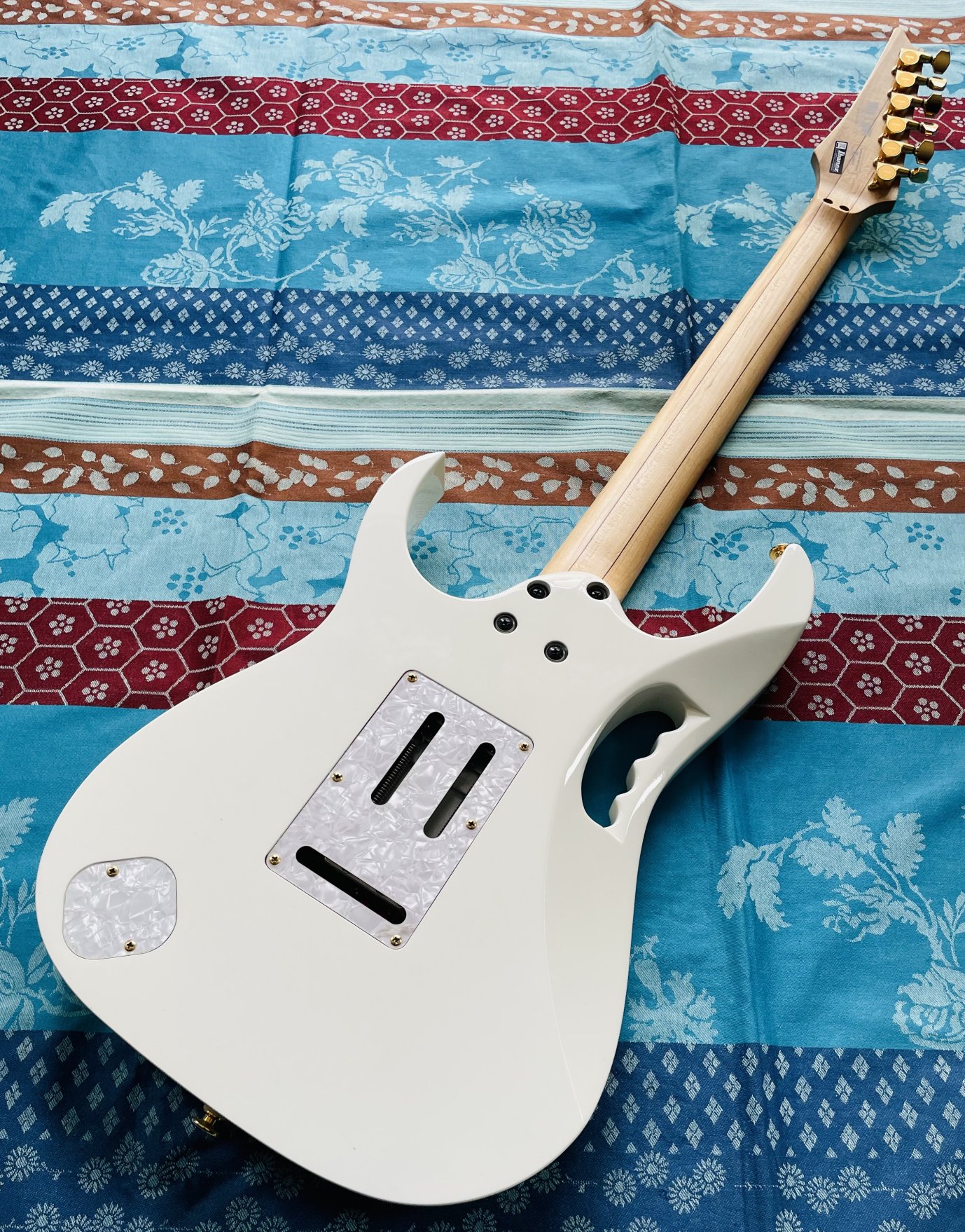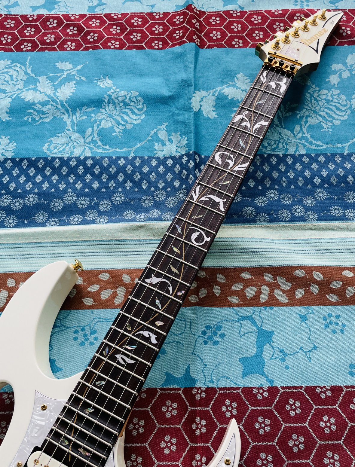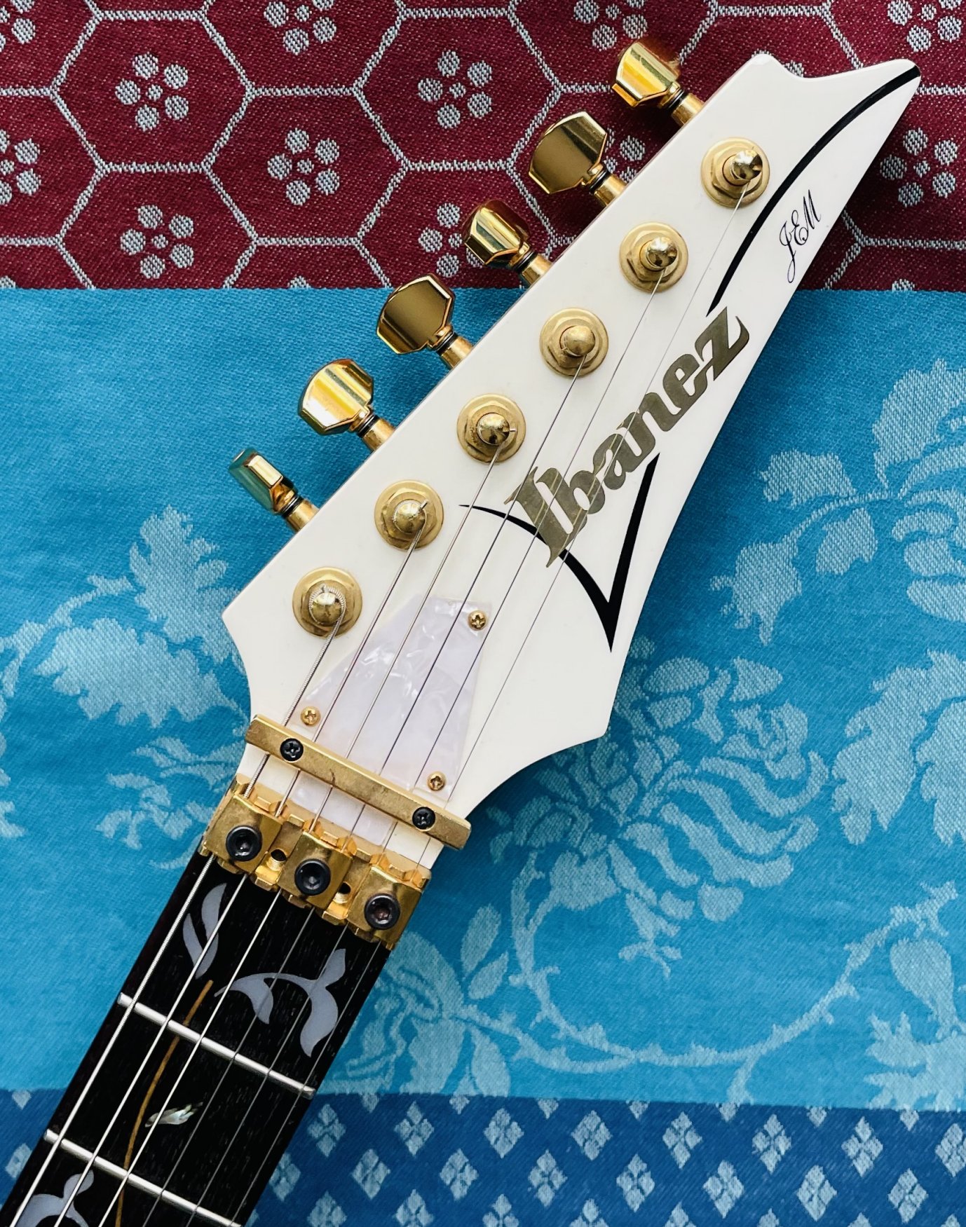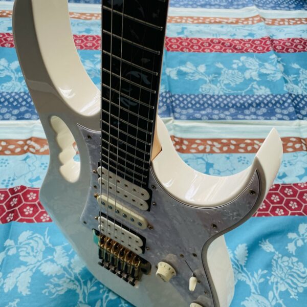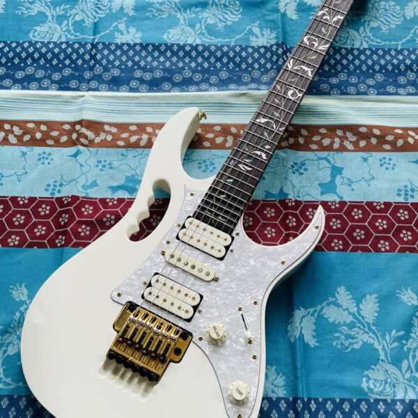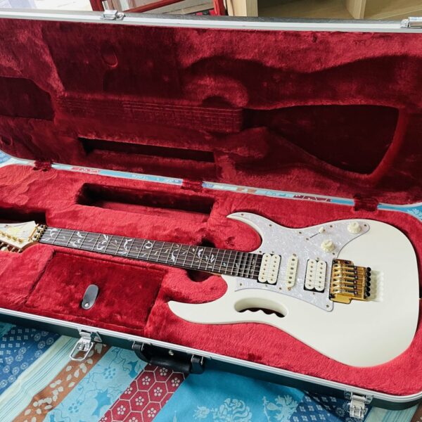 Guitare électrique Ibanez JEM 7 White n°F0701213 (2006, Japan), étui d’origine J-Craft, réglée chez le luthier Thébé Lutherie (février 2026)