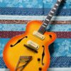 en très bon état général malgré un petit impact sur le vernis (bord droit du corps), des frettes et un manche en parfait état. Le vibrato a été bloqué par le luthier Caro mais on peut l’utiliser. Excellents micros, sélecteur 5 positions doublé avec le switch Commutateur Alter. Les cordes sont réglées très basses ici.