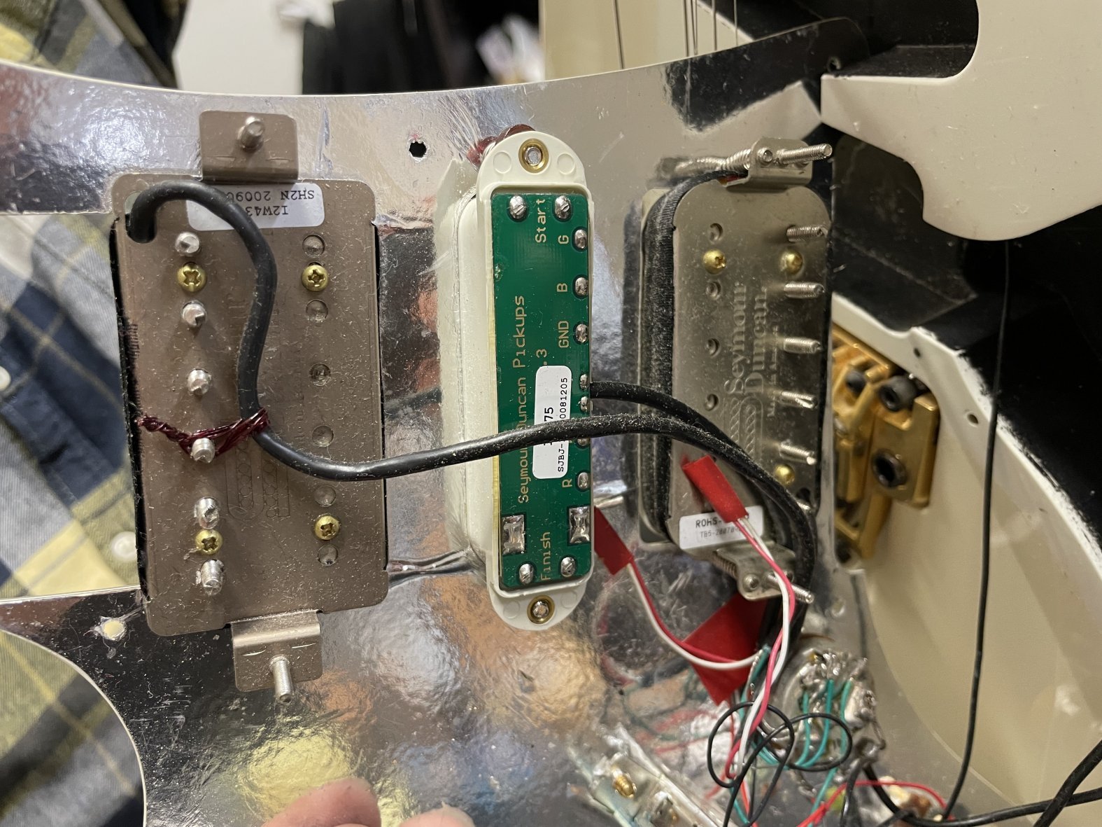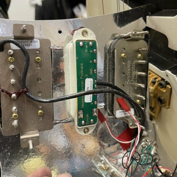 Micros Seymour Duncan SH2 (manche), TB5 (Chevalet) et SJB6 (milieu).