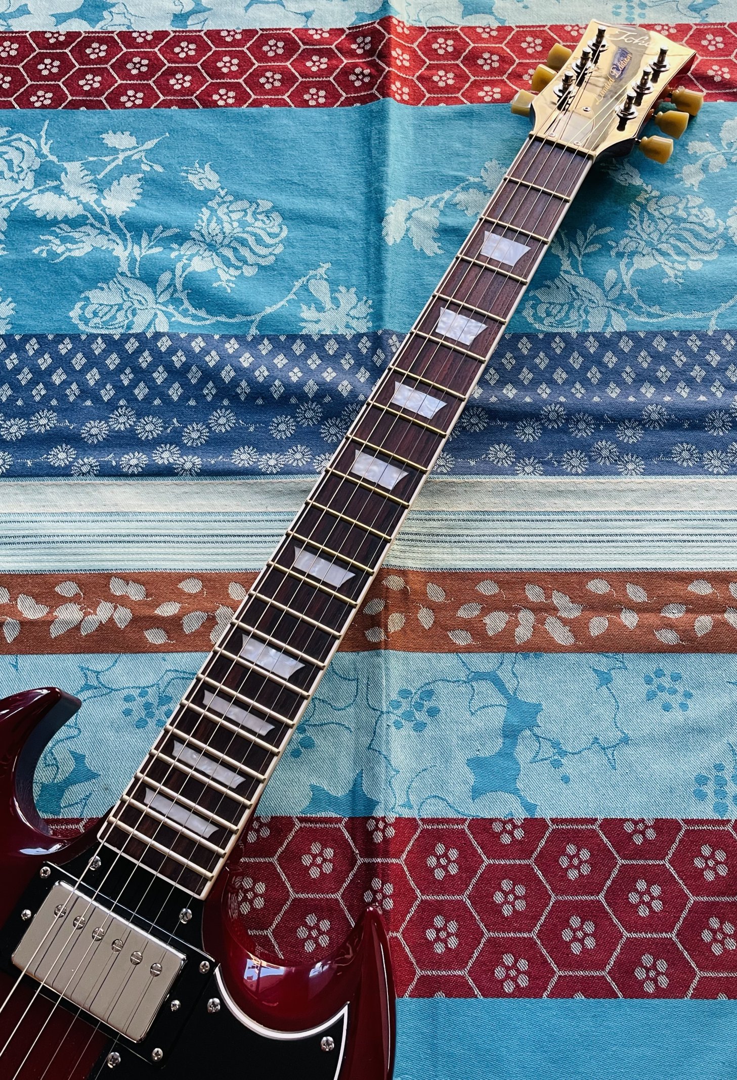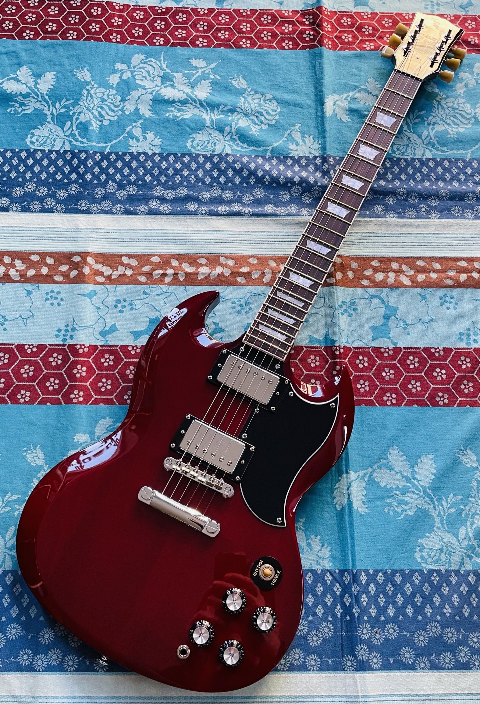Guitare électrique Tokai SG58 Cherry Limited Edition n°CN21060395, étui X-tone, mécaniques changées Grover 135N, mécaniques d’origine