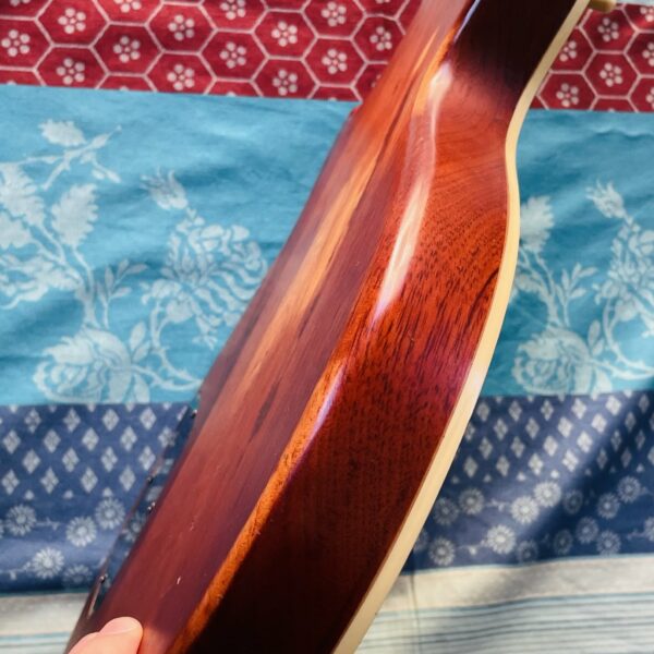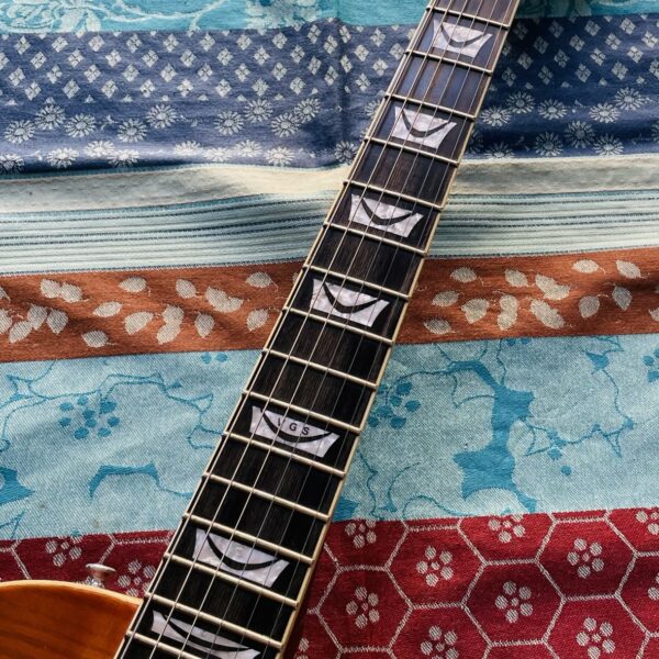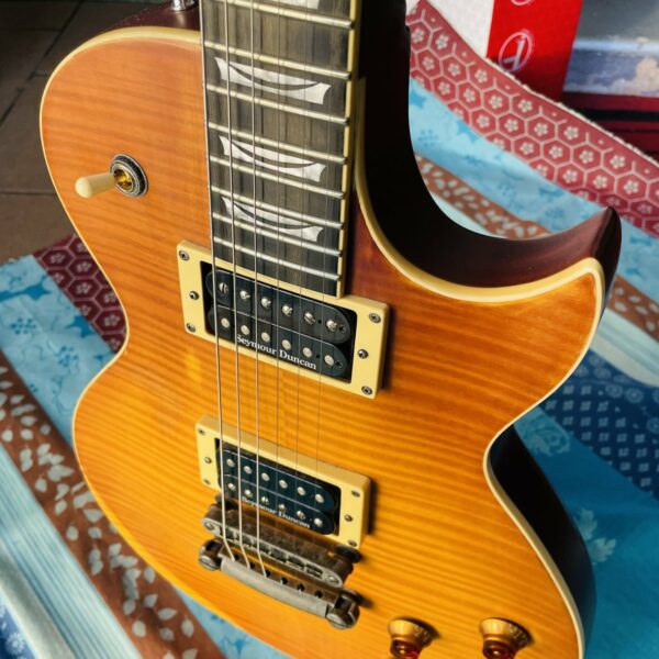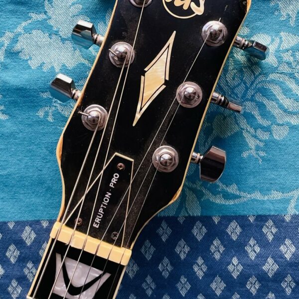 dans un état largement bon malgré des traces au dos. Une guitare intéressante au vu des micros et ce push pull qui splitte les micros doubles bobinage en de simples, vous avez un Treble Bleed (Un treble bleed se monte sur le volume de la guitare et permet de préserver les aigus quand on baisse le son). Les mécaniques ont été changées par des autobloquantes.