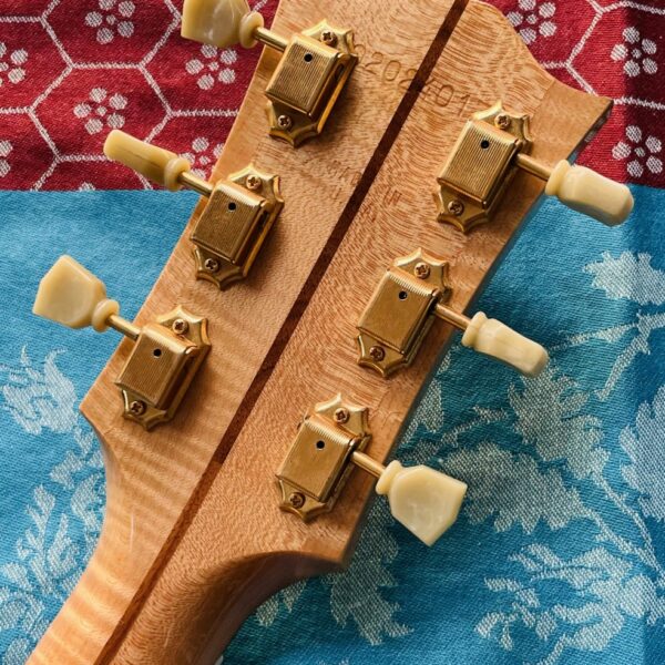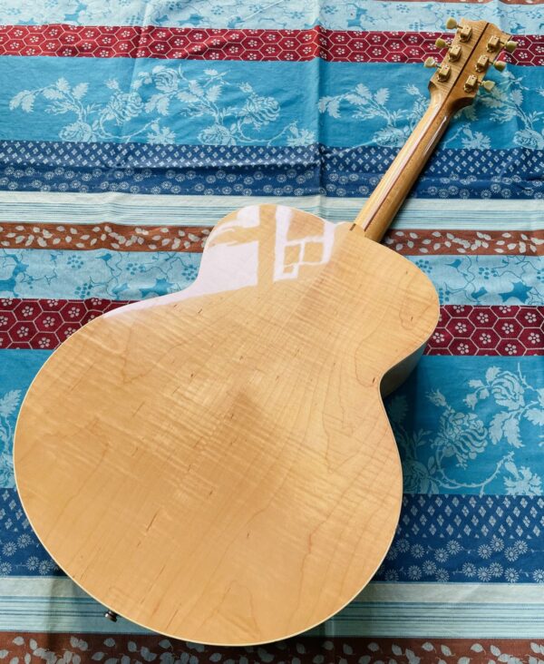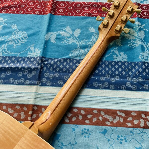 c’est une très belle guitare mais qui a été pas mal jouée et bien rodée côté son, des traces d’usures sur la table type rayures et un impact plus important en haut de la table.