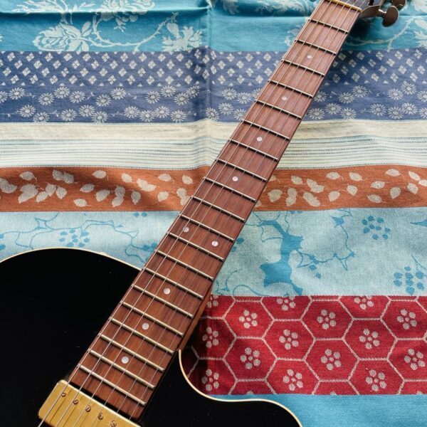 en bon état général. Vous avez deux micros, l’un électrique avec un Humbucker et un second acoustique avec un piezo, bouton volume et bouton de balance des deux micros.