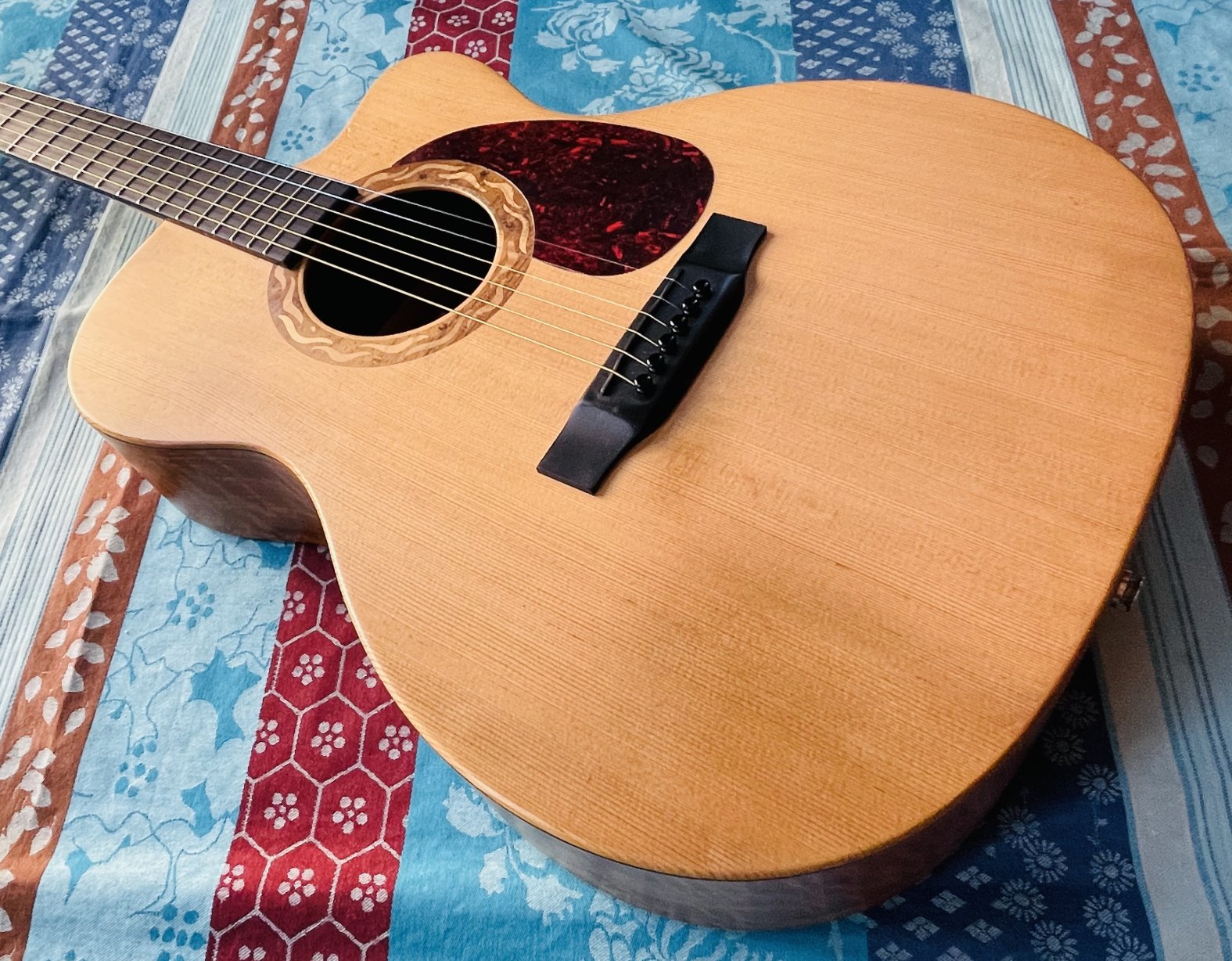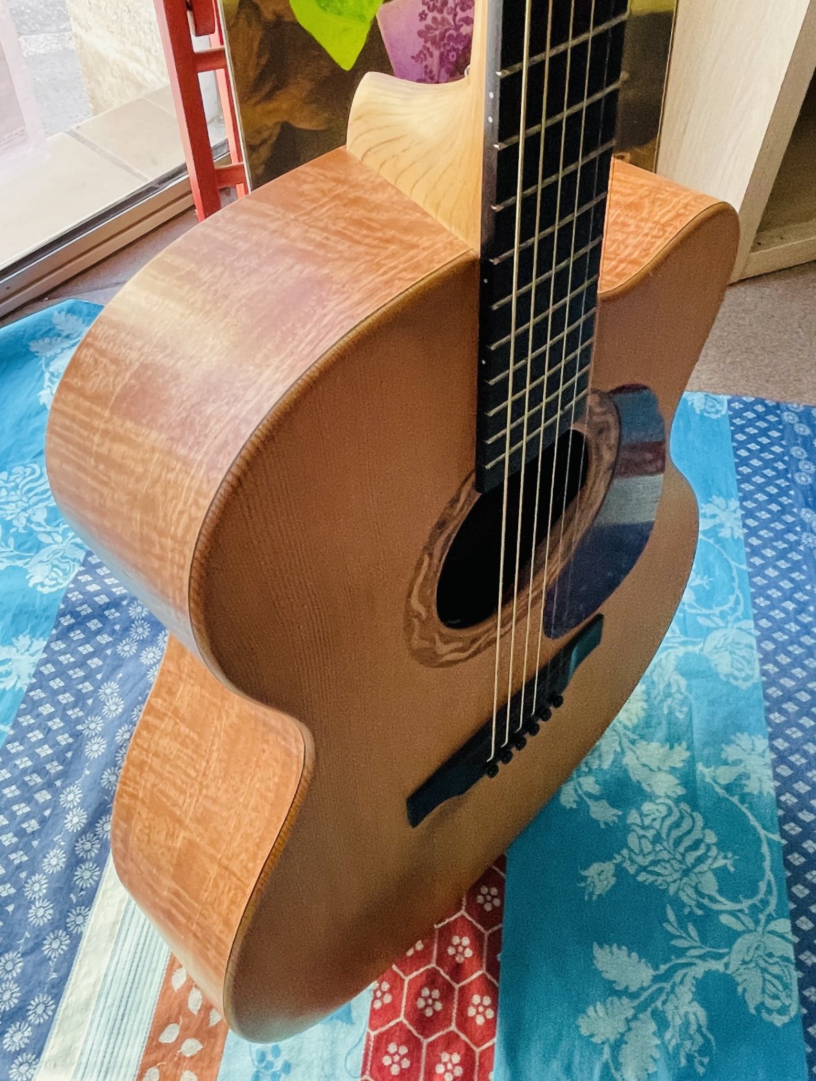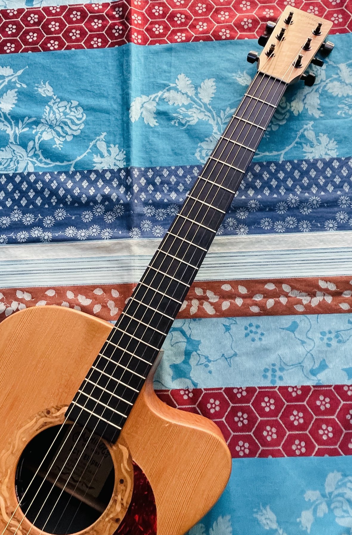 Incrustation sur la rosace en Koa, érable et palissandre des indes