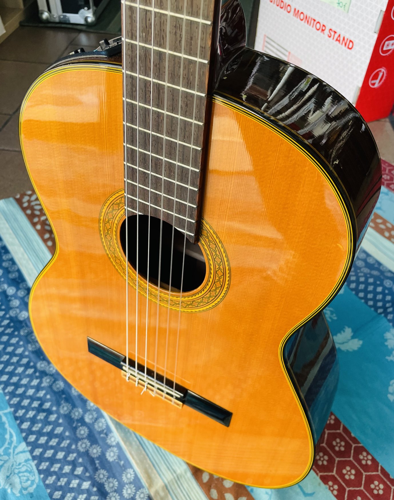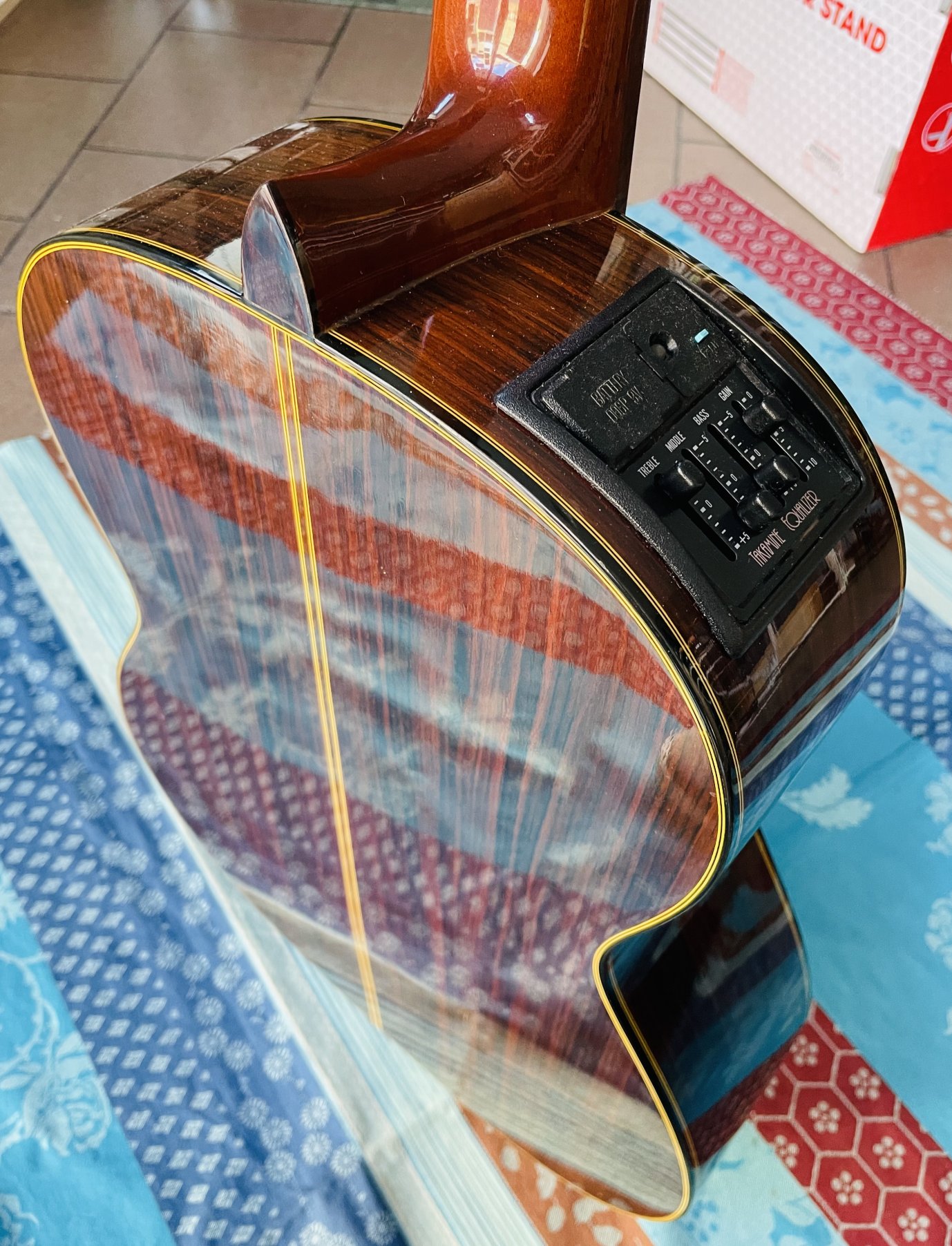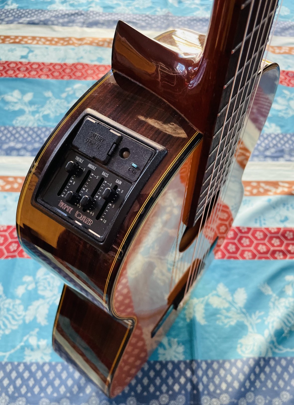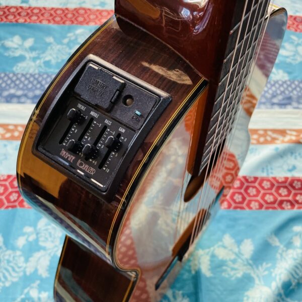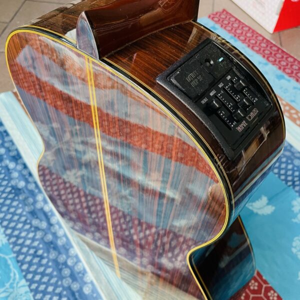 en bon état pour son âge, l’usure est mineure, le préampli Takamine Equalizer est de qualité et parfaitement fonctionnel, les cordes sont basses et très proche du manche. Cette guitare a appartenu au guitariste chanteur Erick Manana, l’un des plus grands représentants de la musique Malgache, il est venu au magasin nous rencontrer (voir les photos dans la page Gallerie Photos). Erick Manana est fidèle à Au Son Vert depuis presque le début du magasin en 2013