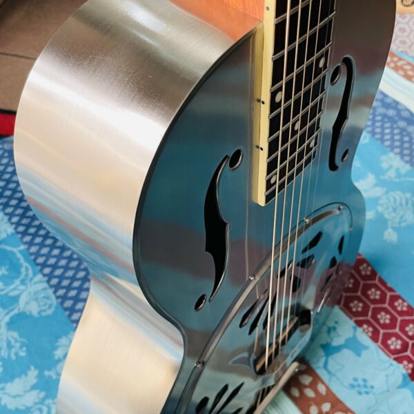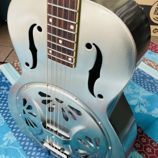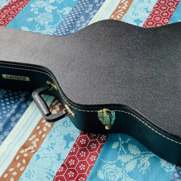 Guitare Résonateur Gretsch G9221 Bobtail Steel Roundneck n°CAXR142628, Case Gretsch (G6296), sangle, capo G7th, 2 jeux de cordes d’Addario EJ16-3D, 2 bottlenecks Dunlop, accordeur