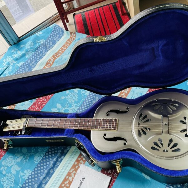 la résonateur vaut neuf 1000 € sans étui, l’étui Gretsch vaut neuf 149
