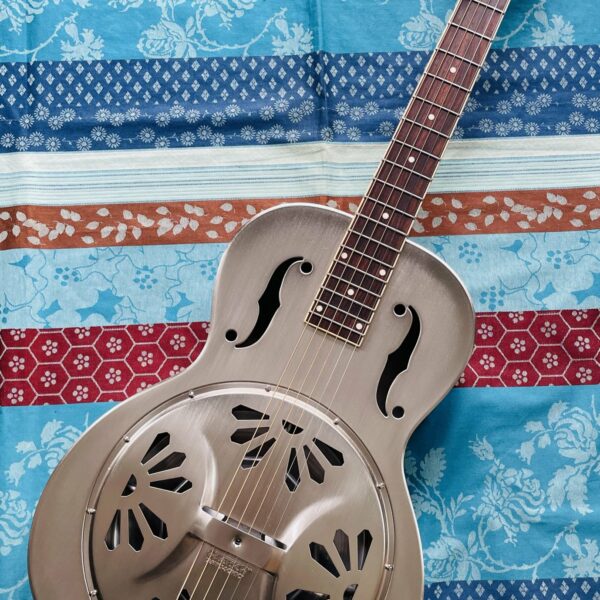 Guitare Résonateur Gretsch G9221 Bobtail Steel Roundneck n°CAXR142628, Case Gretsch (G6296), sangle, capo G7th, 2 jeux de cordes d’Addario EJ16-3D, 2 bottlenecks Dunlop, accordeur