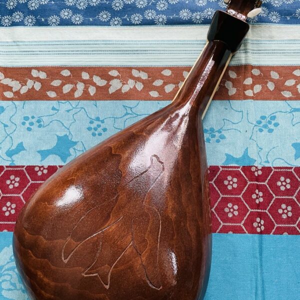 en très bon état avec un aspect de neuf. Un très bel instrument original, proche d’un violon à tenir de manière verticale, on utilise un archet mais les doigts ne se posent pas sur les cordes mais à côté. Cet instrument provient d’un magasin de Crête (Grèce). Dans les premiers prix, d’autres lyres sont plus chères que ce modèle premier prix.