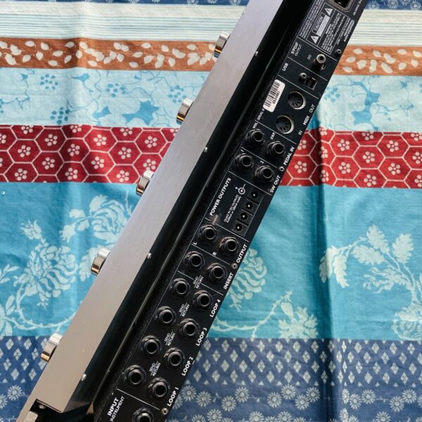 en bon état, quelques traces visibles mineures. Testé et fonctionnel. Il n’est pas léger et en plastique, c’est du robuste, en aluminium massif avec des gros switches et de la sérigraphie bien visible. Il valait neuf 580 €. Le pédalier demande un peu de prise en main. En résumé, vous avez au haut du pédalier une rangée de switches au pied qui sont aussi des Encoders pour naviguer dans les presets manuellement, modifier les paramètres de vos sons, au bas vous avez deux rangées de switches pour pied uniquement. Il parait compliqué mais il faut simplement connaitre le bon chemin à prendre pour charger les Presets, activer les Loopers, le Switch Boost est direct. La notice est Française mais il faut pratiquer.