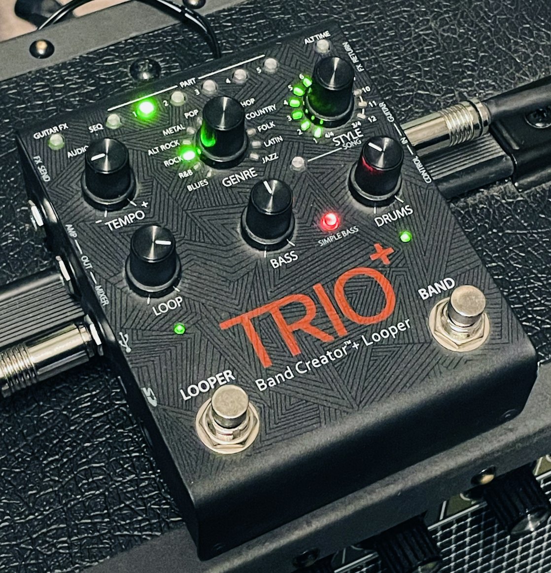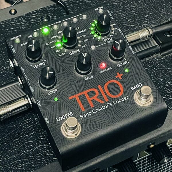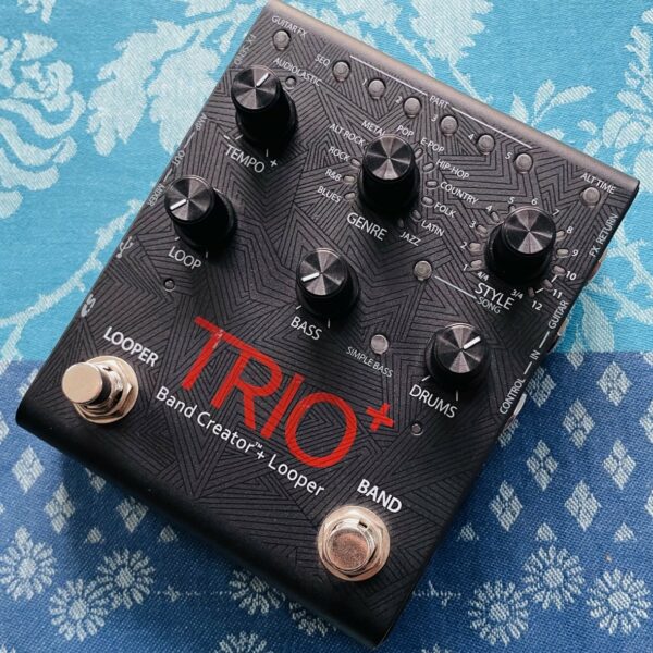 en très bon état, testée et parfaitement fonctionnelle. Un très bel outil pratique pour travailler et vous accompagner, des batteries et basses réalistes et de qualité, libre à vous de couper la basse si vous voulez uniquement travailler avec la batterie. Une pédale bien complète, la version Trio + offre un looper en plus