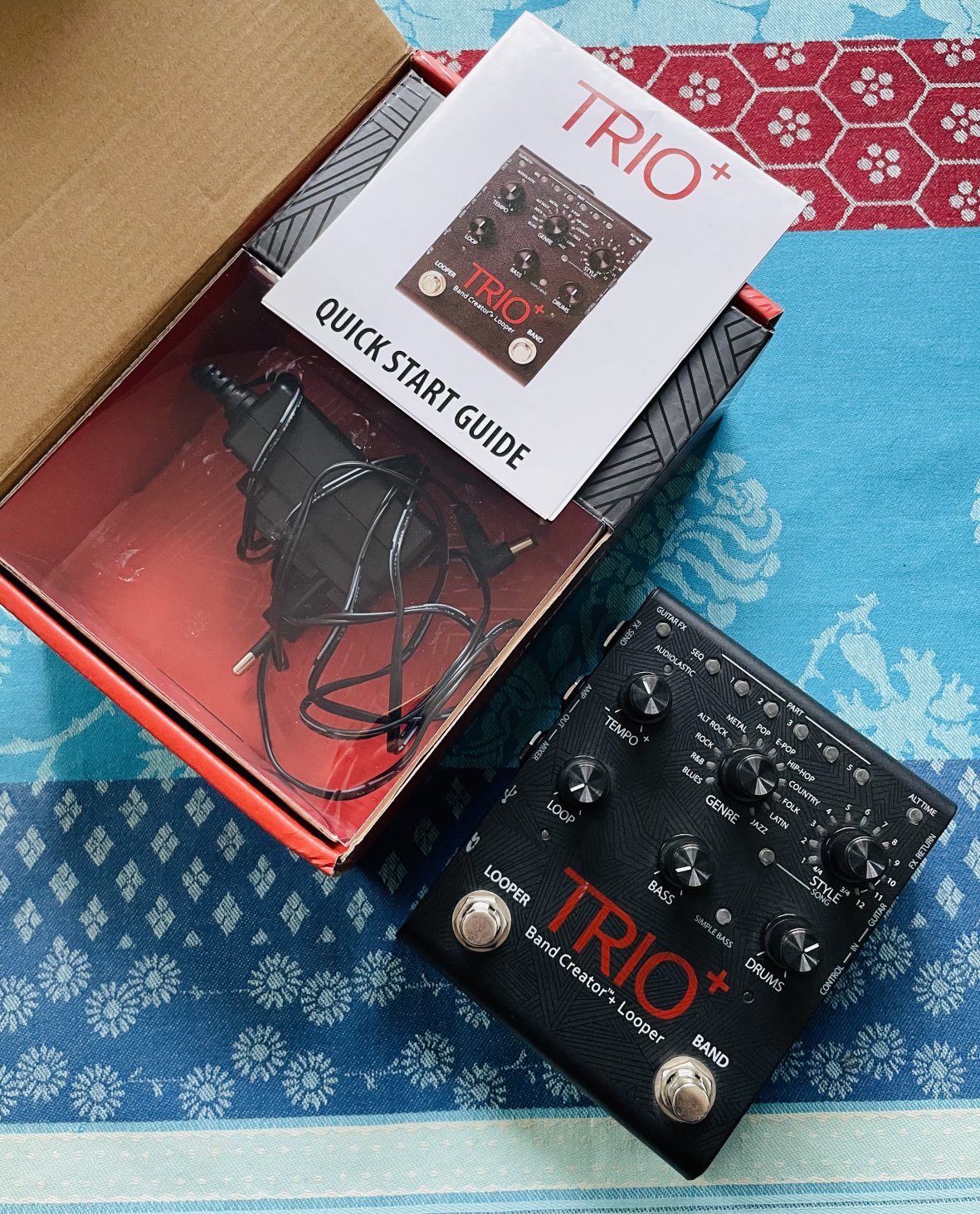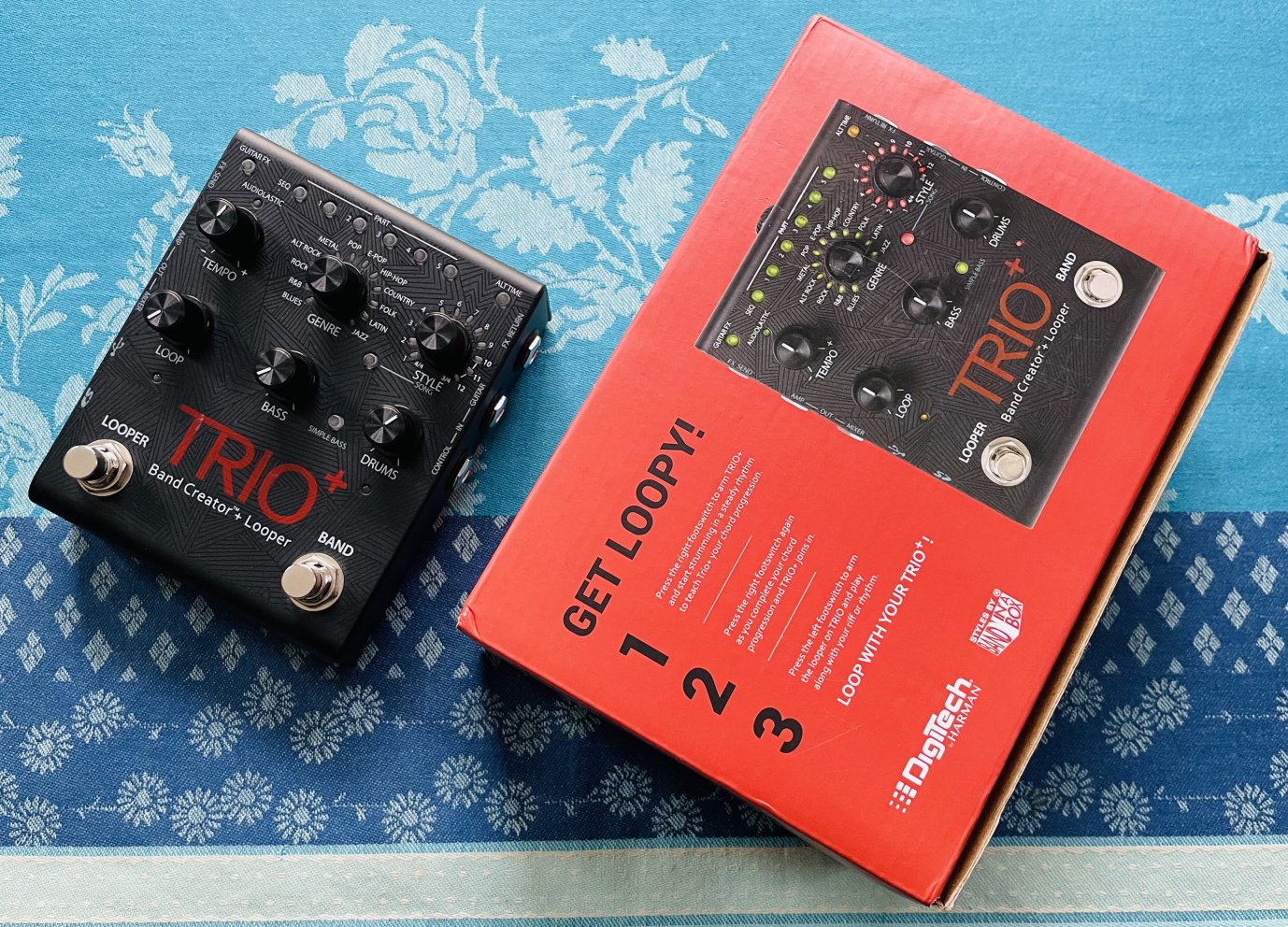 Pédale d’accompagnement basse batterie looper Digitech Trio+ n°12002539366, boite et alim d’origine, notice