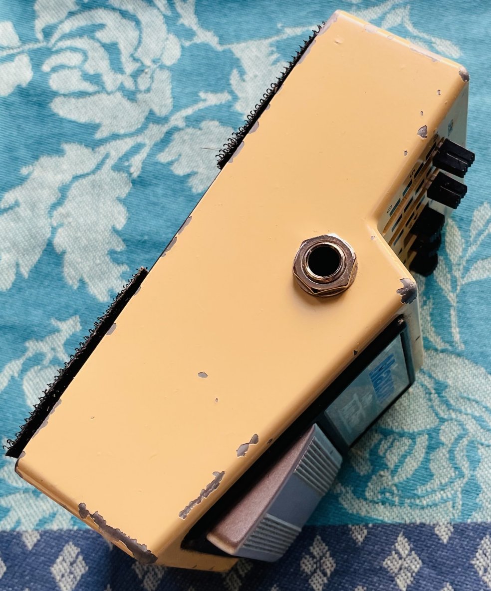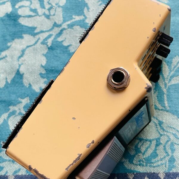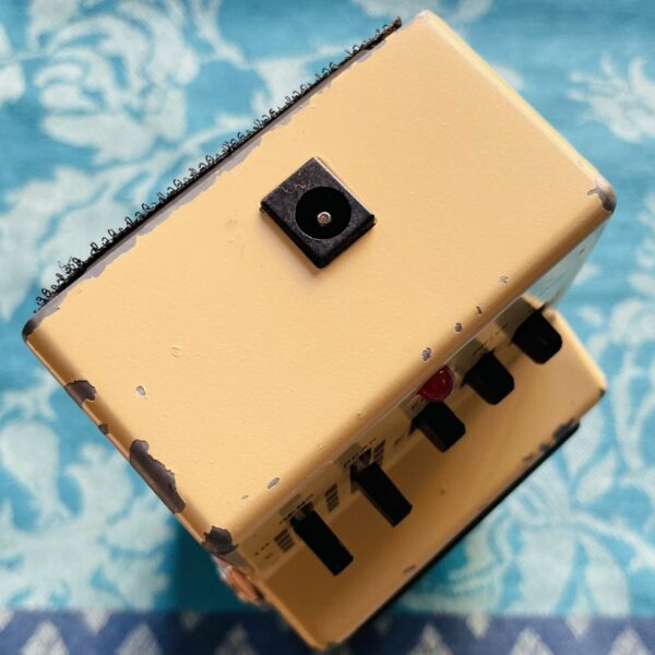 dans un état correct, testée et fonctionnelle avec une alimentation externe 9V. C’est une très bonne pédale! Des réglages SENS, PEAK, FILTER, DRIVE et RANGE