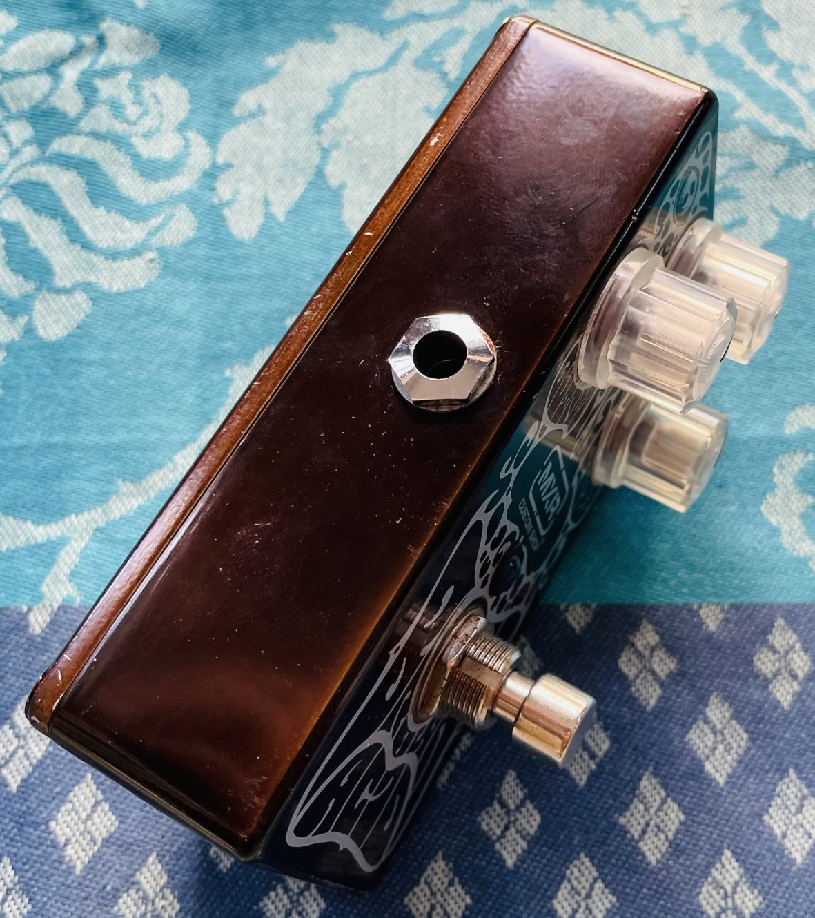 en bon état, l’usure est mineure sur la sérigraphie, deux petits morceaux de scratch ont été posés au dos. Une fuzz type année 1970. Testée et fonctionnelle