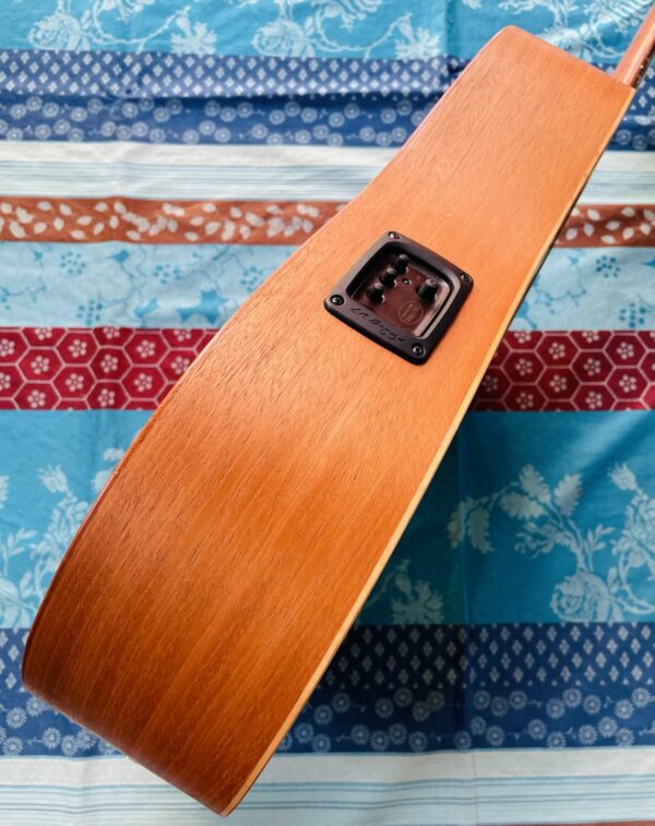 en très bon état général malgré quelques petites traces, très belle guitare rare d’occasion, très bel étui d’origine. Réglée chez le luthier Caro le 03.10.24 (réglage de l’instrument, cordes neuves Kerly Kues Earthones Bronze 11/52)