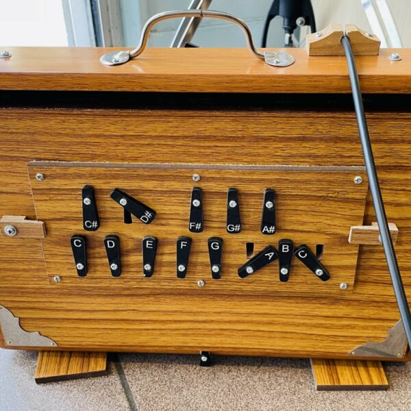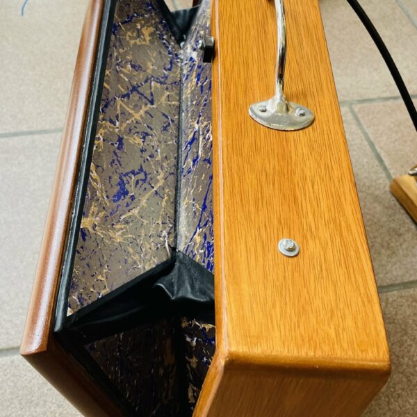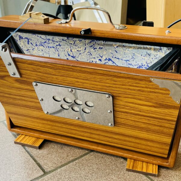 en très bon état. Mesure 38.1 X 25.4 X 7.6 cm, en bois tek, accordage 432 Hz