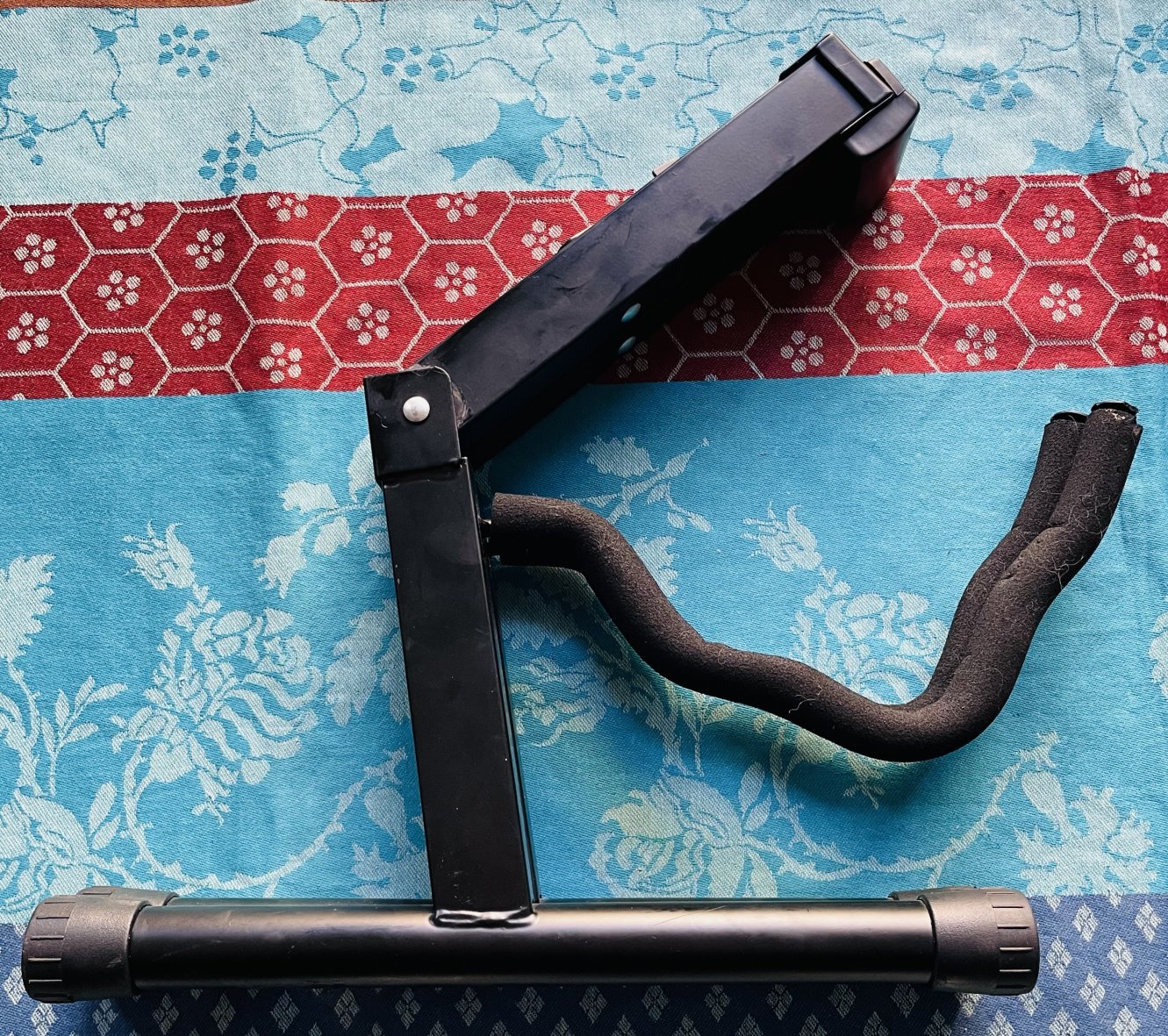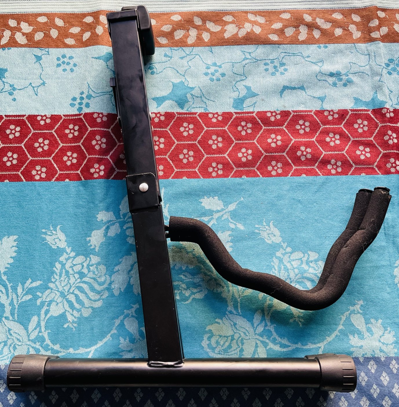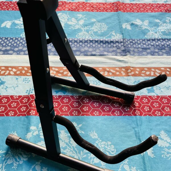 en bon état et pliable. L’avantage de ce modèle est qu’il peut se replier sur lui-même, il sera donc encore plus facile à ranger dans un sac, les autres stands se referment mais ne se replient pas. Pour guitare électrique, acoustique et autre classique.