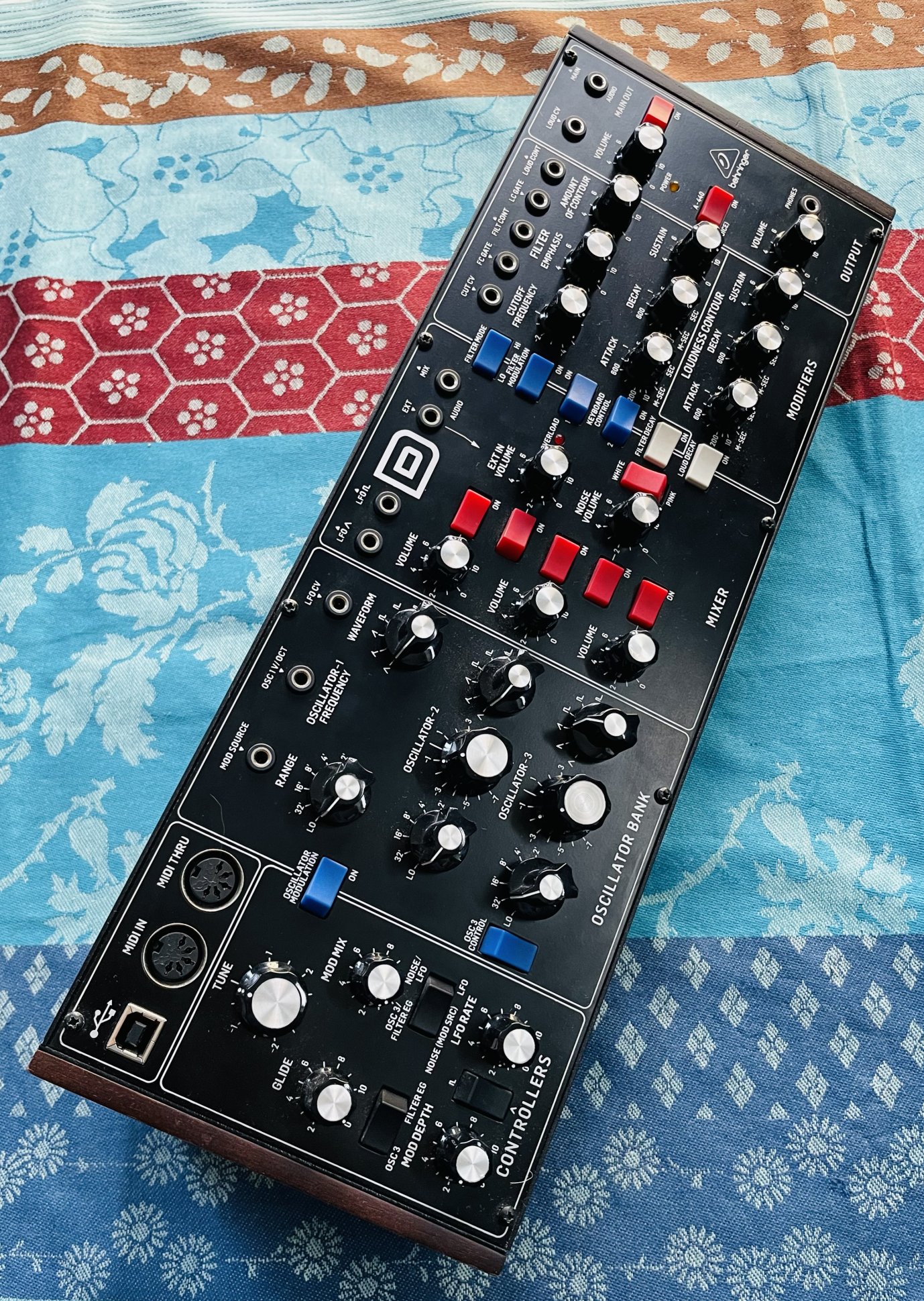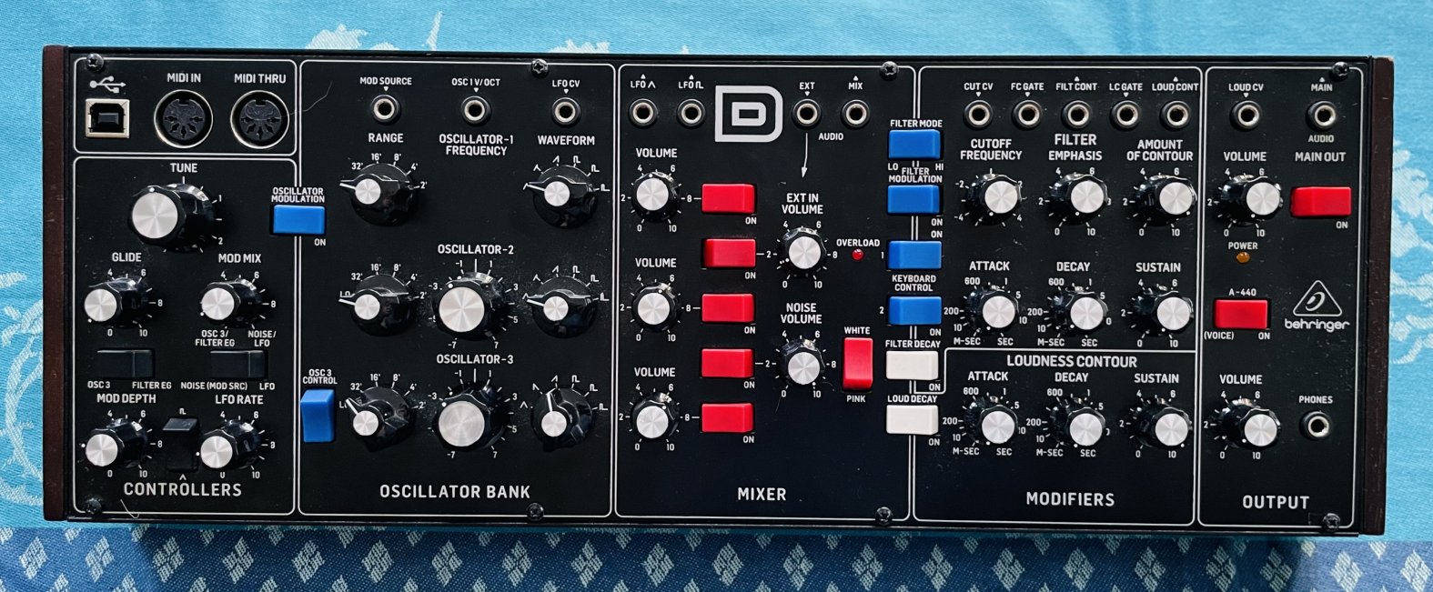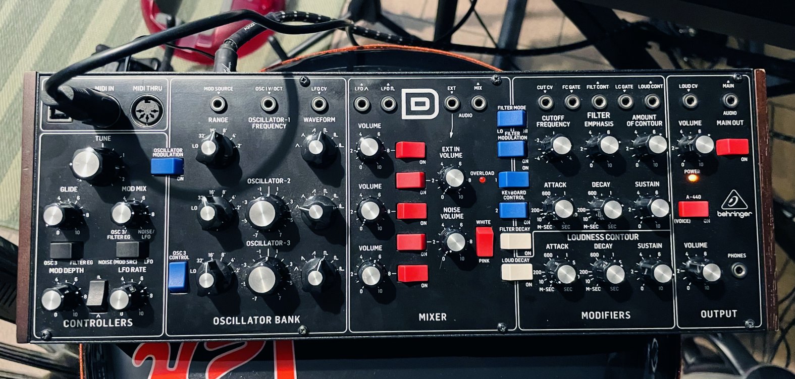 Synthé analogique monodique semi-modulaire Behringer Model D n°5181101287CQD, alim, boite d’origine