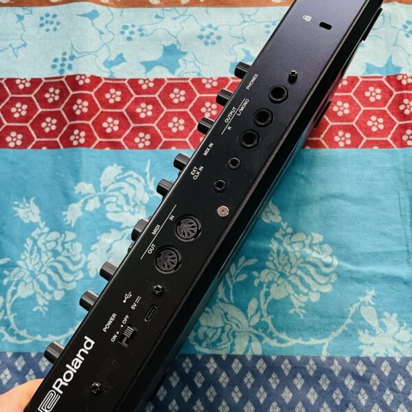 en excellent état et très peu utilisé, du matériel du magasin acheté neuf chez Starmusic le 14.01.2025. Piles neuves fournies. Prix du neuf 555 €. Un synthé puissant et fort sympathique, on retrouve un excellent panel de sons qui ont fait la renommée de Roland, la qualité est au rendez-vous et il rappelle un peu le Quasimidi Polymorph en plus percutant.