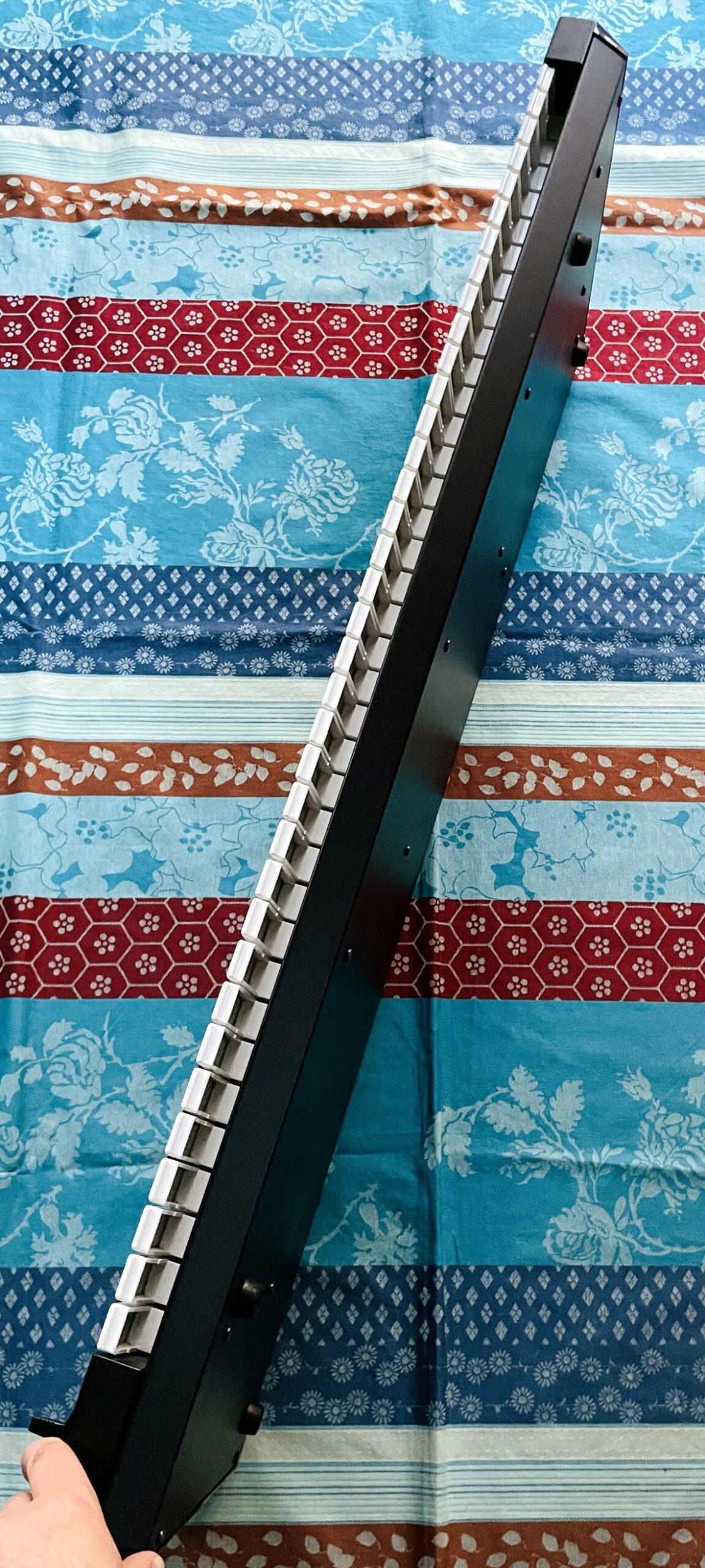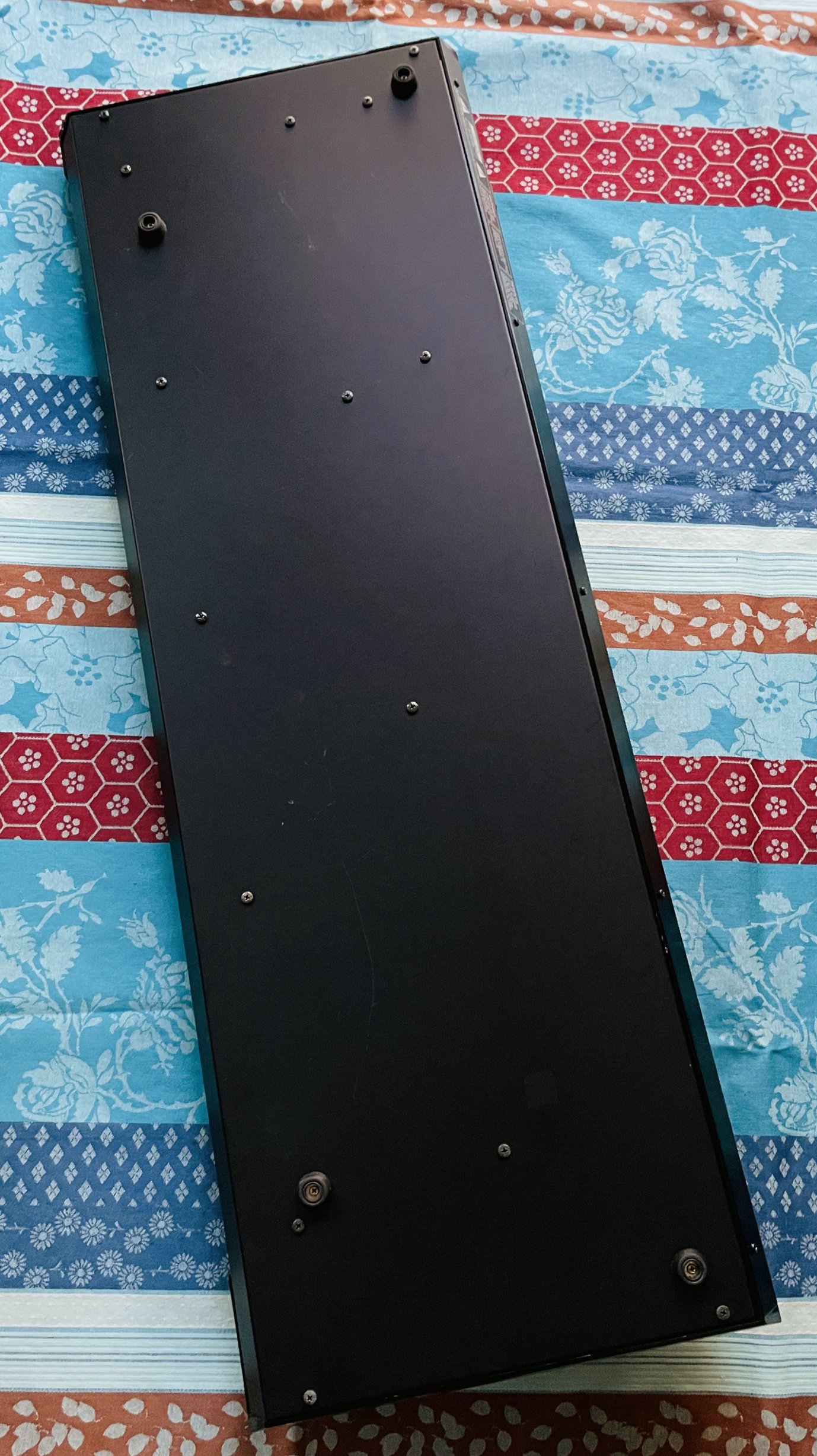 en très bon état général pour son âge, le clavier marche très bien et les touches sont blanches en bon état. De très beaux sons d’époque reconnaissables du D-50, très facile à utiliser pour créer vos propres sons, un toucher du clavier bien agréable et bien supérieur à certains modèles de maintenant. Avec ses prises midi vous pourrez l’utiliser aussi en clavier maitre. Plusieurs cartes sont fonctionnelles (vérifier la pile interne de plusieurs autres fournies)