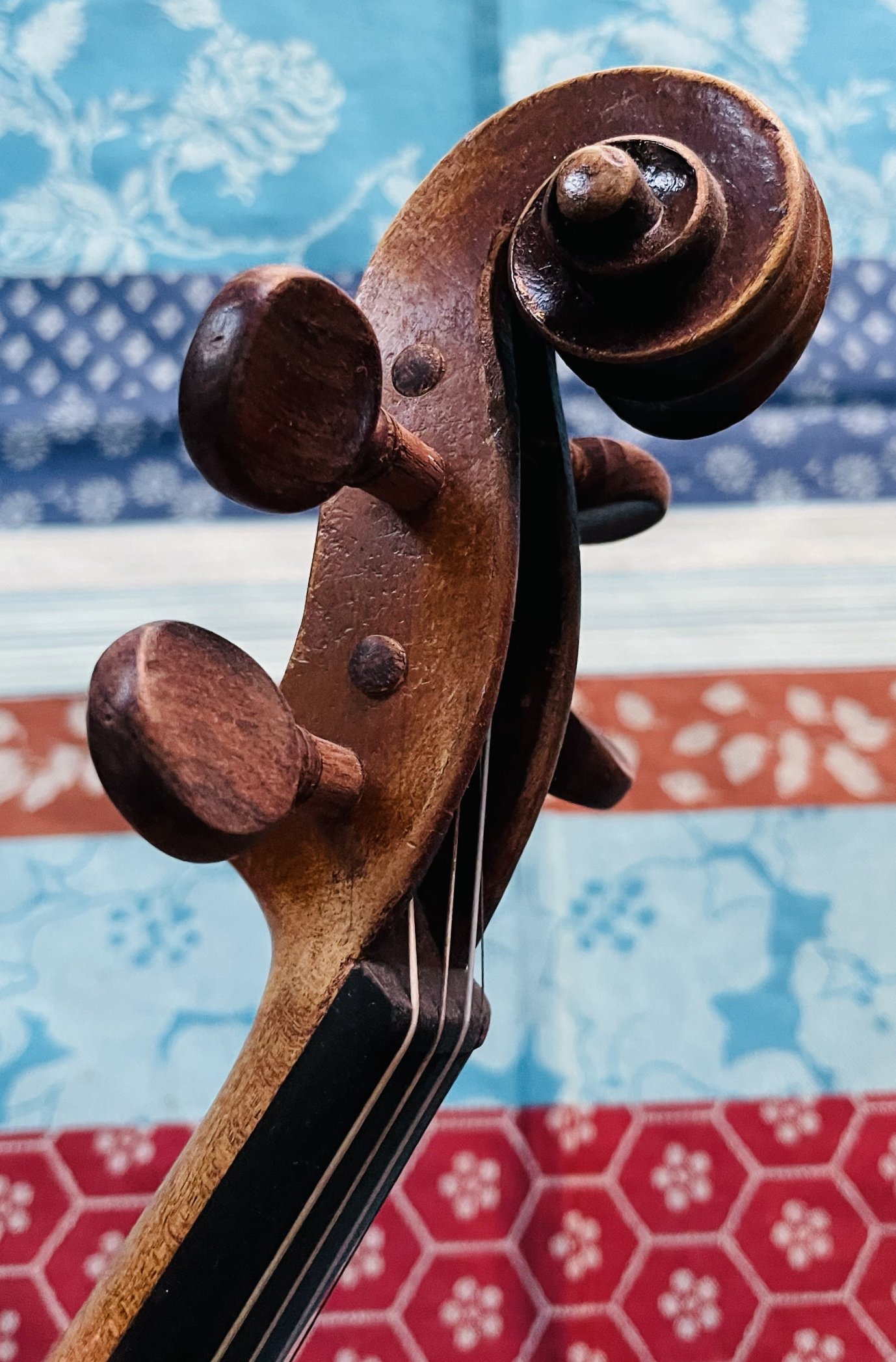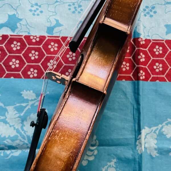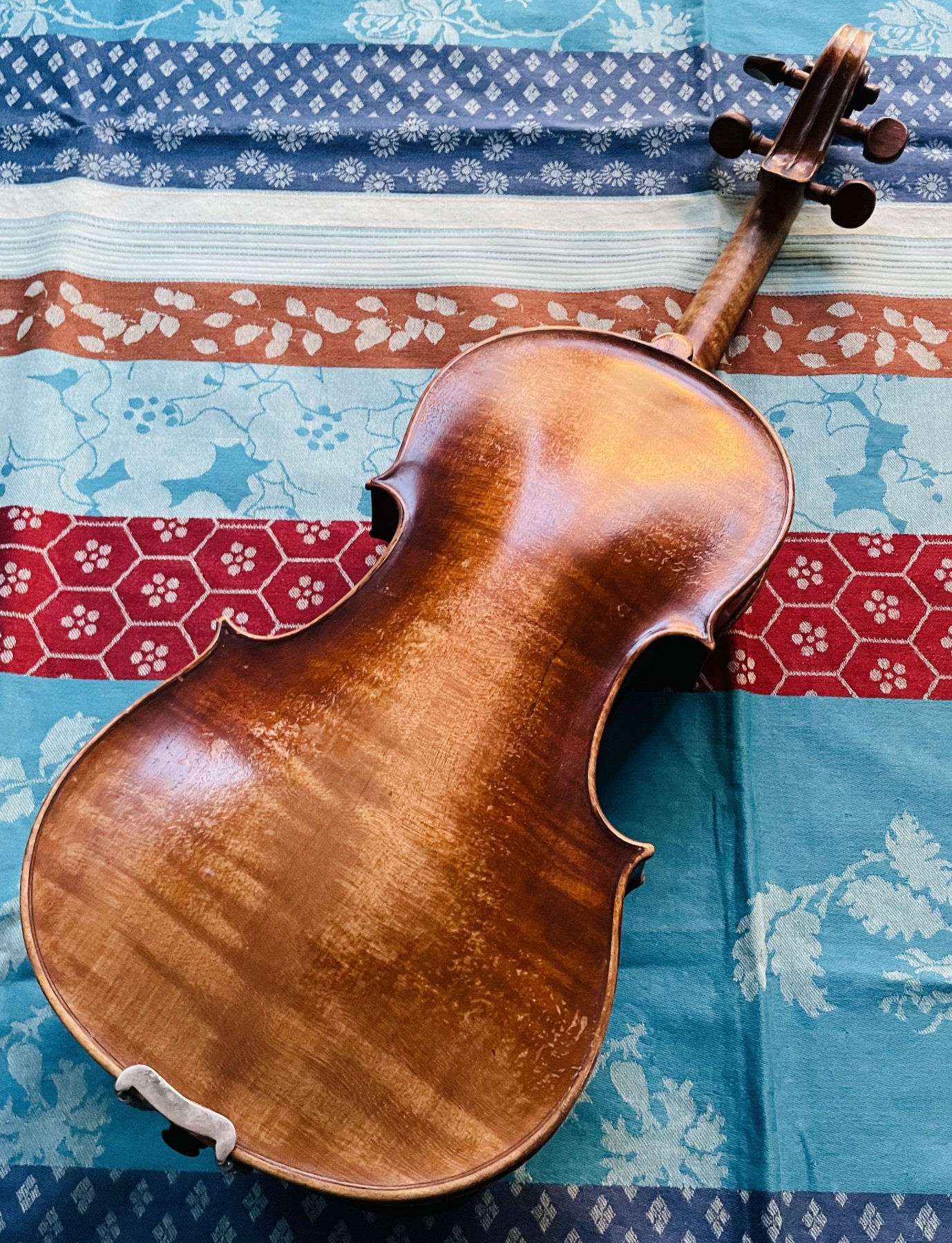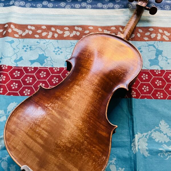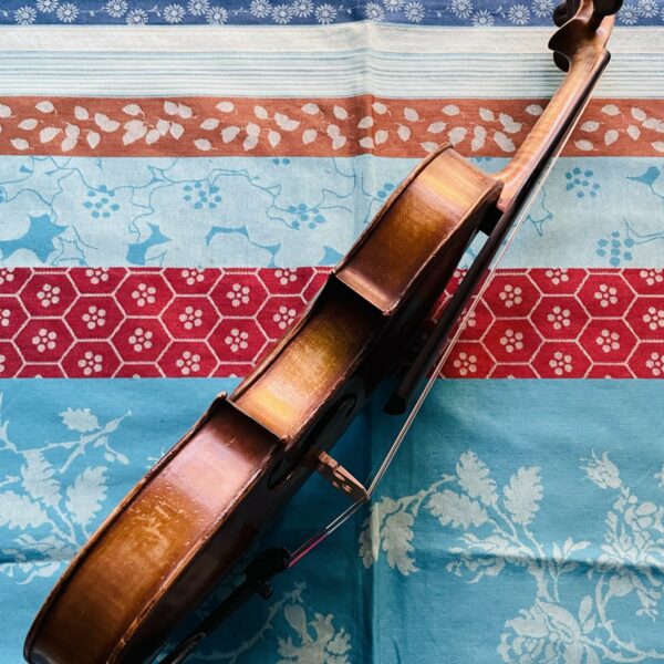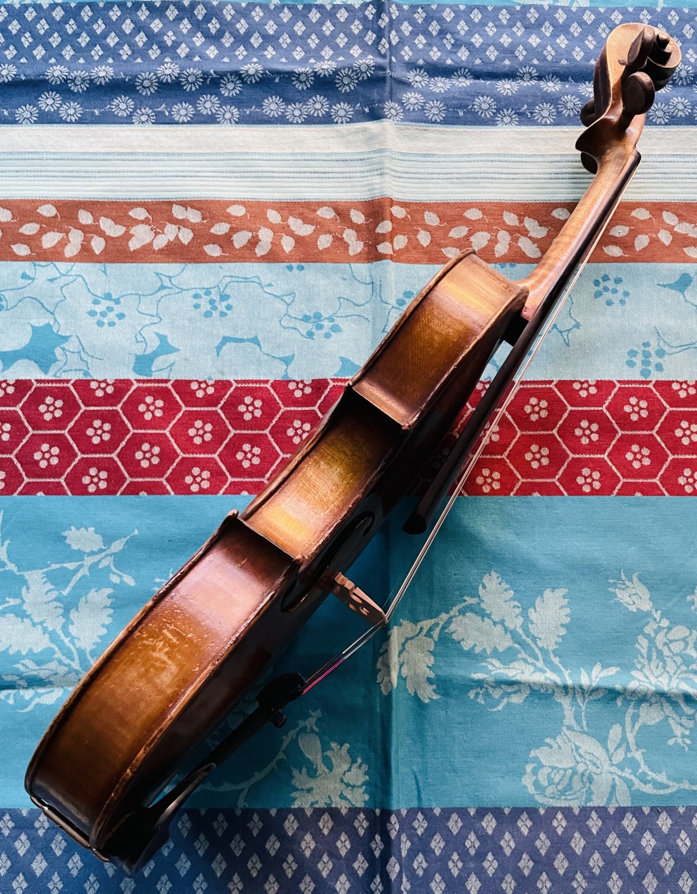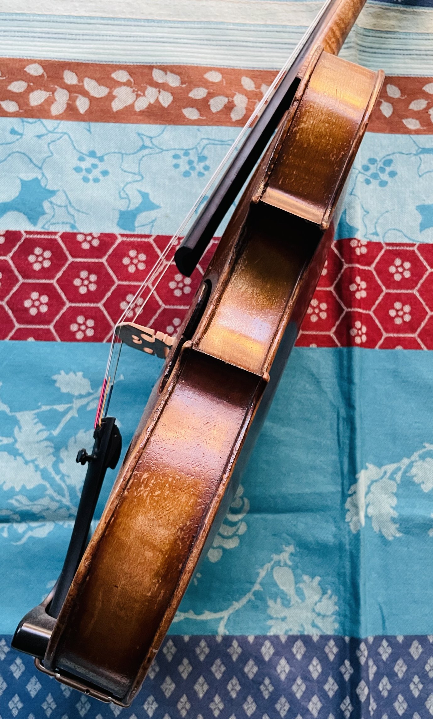 en très bon état général pour son âge, c’est un sérieux violon d’étude très bien restauré par le luthier Simon Bour en mars 2024. Belle sonorité garantie. Prévoir votre propre archet. L’étui est en bois, style vintage mais fonctionnel, libre à vous d’acheter un étui plus actuel. Le violon est des années 1930.